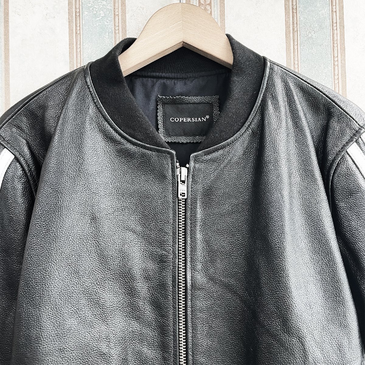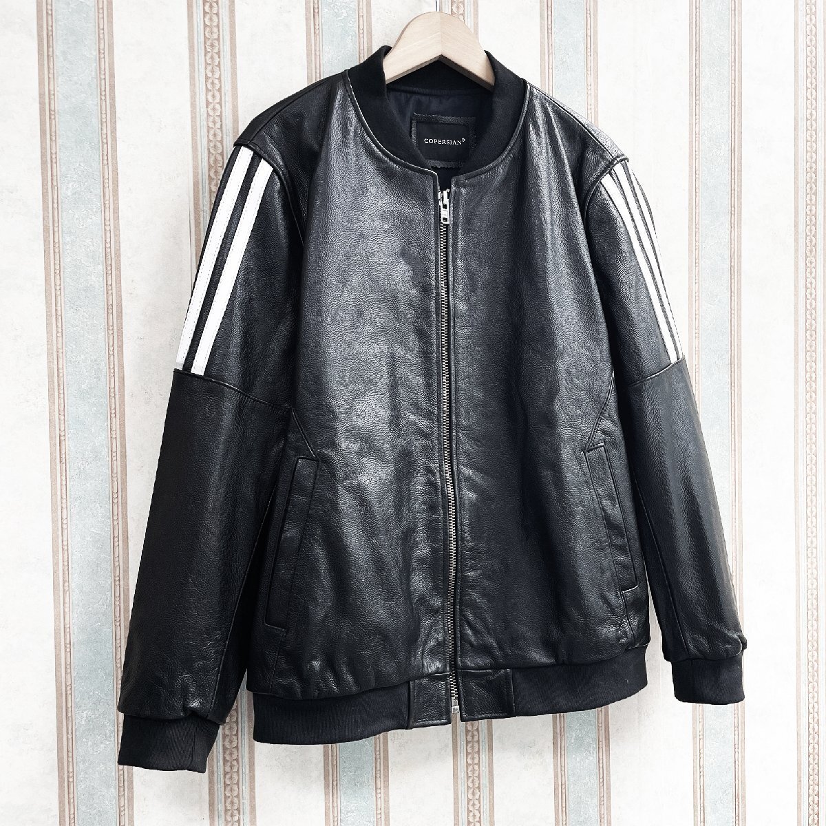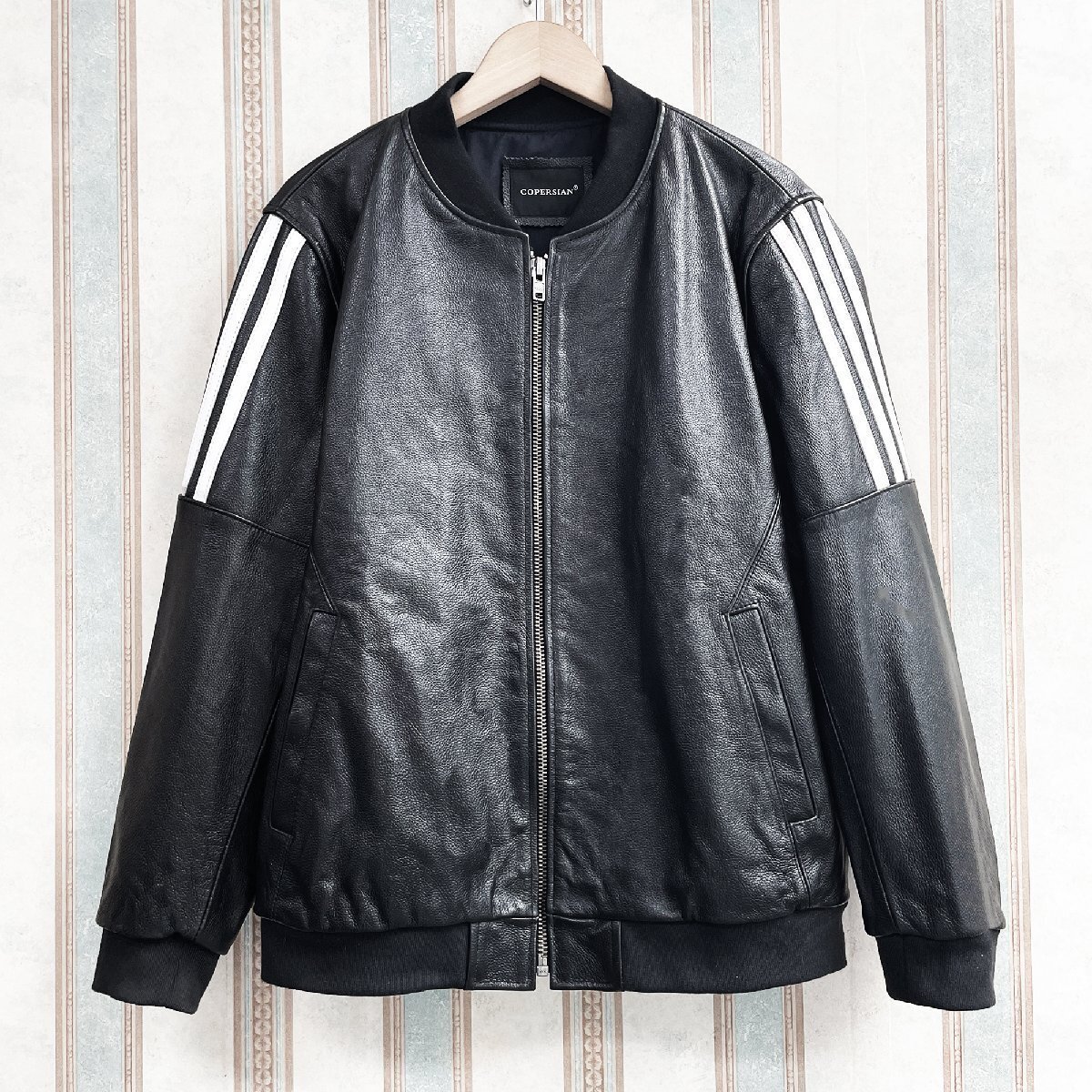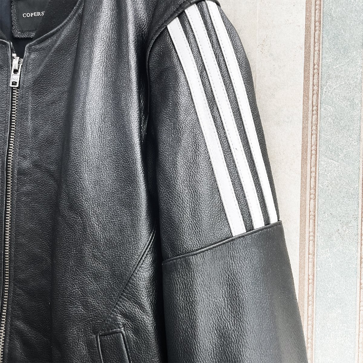 厚すぎず薄すぎない安心感のある程よい厚みの素材です。使いやすく、合わせやすい。後ろ姿もキレイなレザーブルゾン。裏地付きで袖通しもなめらか。さっと羽織るだけでクールに決まる。大胆かつ魅力的でスタイリッシュに男を演出してくれる逸品。ライダースにはもちろん、大人カジュアルにもピッタリの一着です。