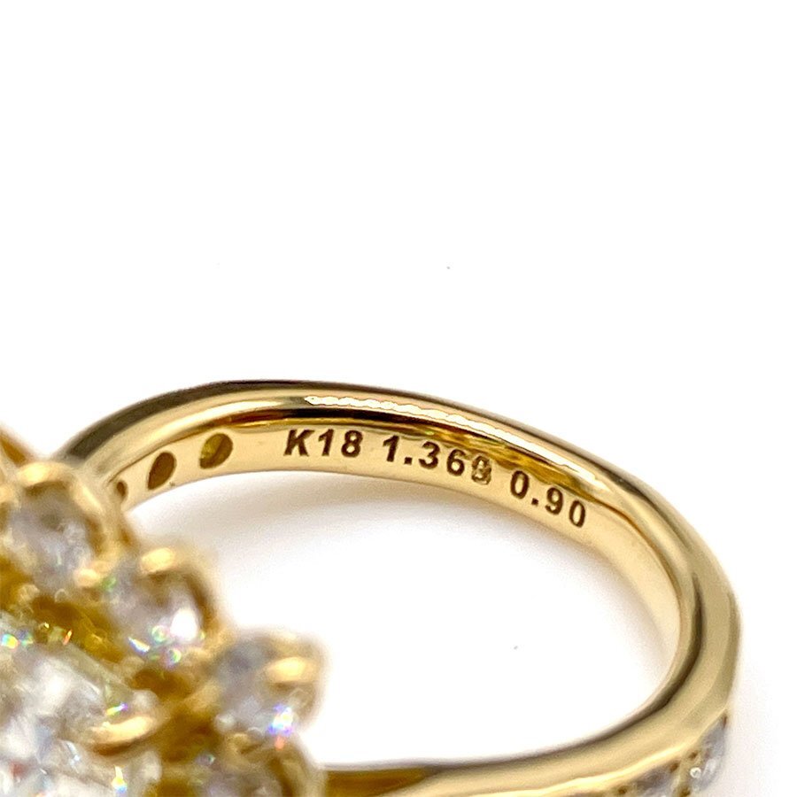 g21632 K18YG D1.368ct(VLY/VS-1) FD0.90ct リング USED 美品 4.2g #4 ソーティング付