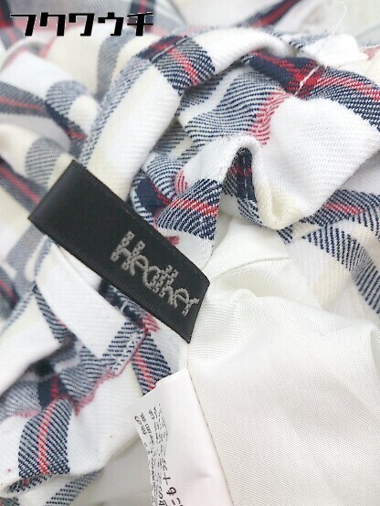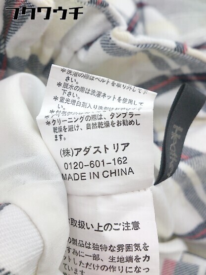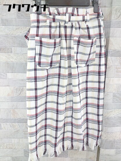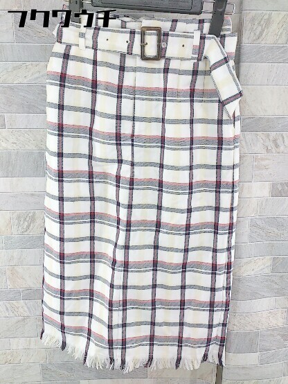 ◇ ◎ Heather ヘザー ウエストベルト付 チェック カットオフ 膝下丈 スカート サイズS ホワイト マルチ レディース