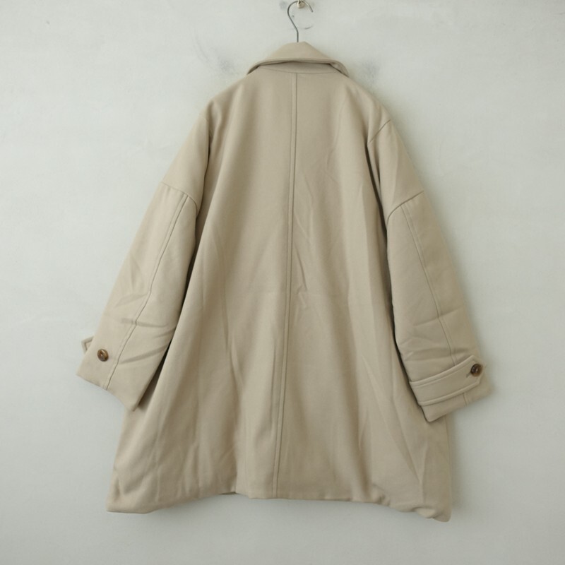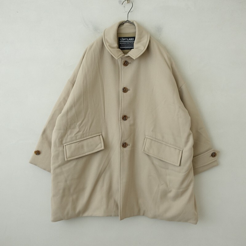 | THE LOFTLABOのシングルボタンオーバーダウンコート 1です。 カラーはライトベージュで、ウールのようなソフトな微起毛素材で仕立てられています。 着脱はフロントボタンのフルオープンで、フロント左右にポケット付きです。 すっきりと落ちるドロップショルダー、裾に向かって自然に広がるAラインが特徴的なミドル丈のコートで、チンストラップ付です。 定価(メーカー希望小売価格)は79,200円のお品物です。 |