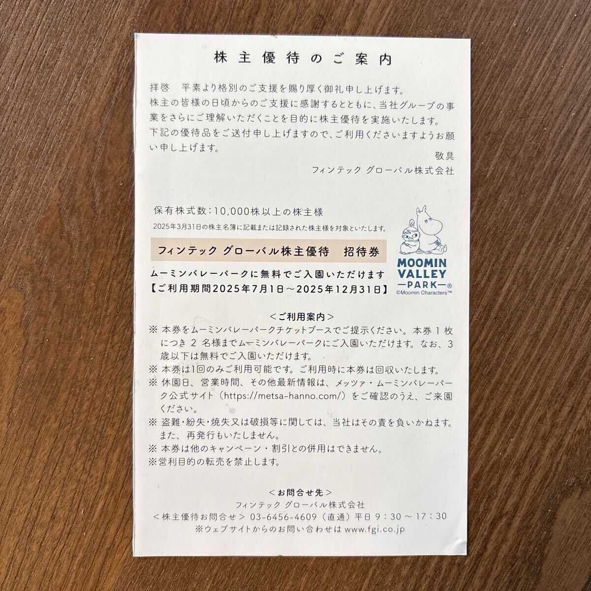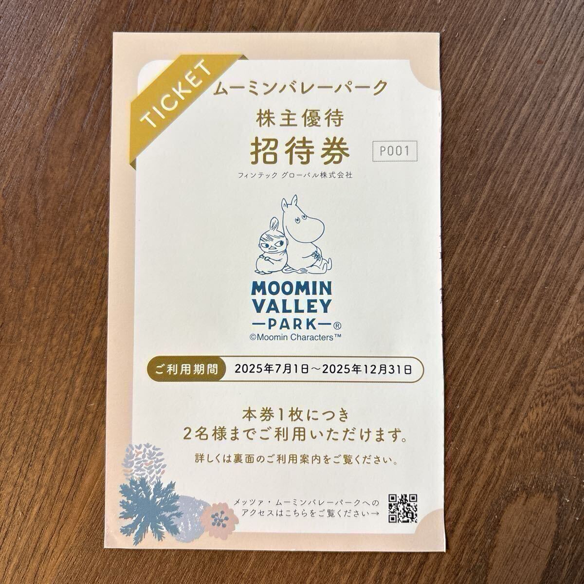 ムーミンバレーパーク株主優待招待券 1枚