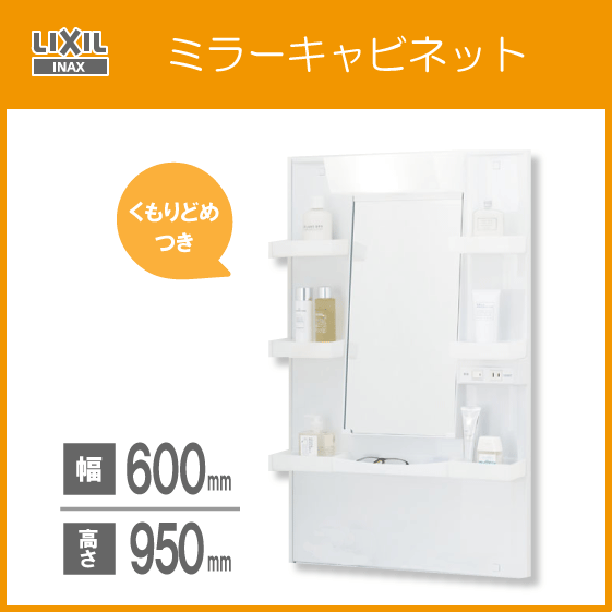 ★ LIXIL INAX ミラーキャビネットのみ 幅:60cm 高さ:95cm MPV1-601YJU (くもり止めコートつき)★