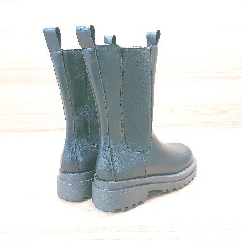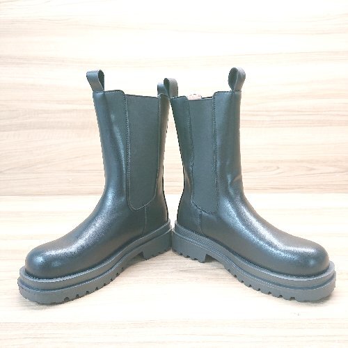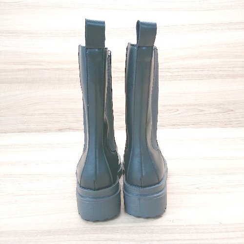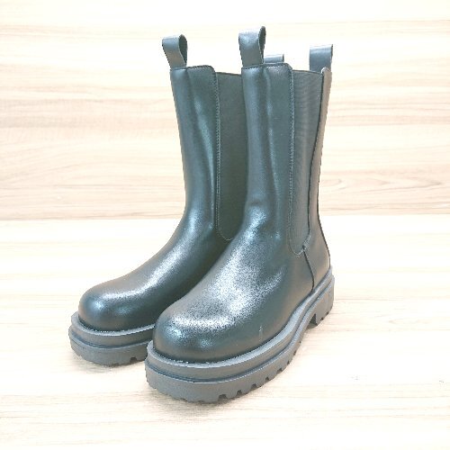 ■ ノーブランド ラウンドトゥ 無地 シンプル ミドル サイドゴアブーツ サイズ39 ブラック レディース E