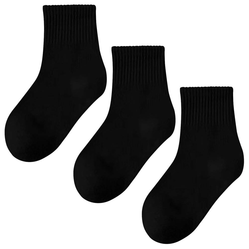 ◆子どもスクール用ソックス 3足セット 白黒2色 13-22cmまで 95%綿 快適 やわらかコットン 保育園/幼稚園/小学生/中学生 登園登校 運動会 発表会 男の子 女の子に【黒 M】SCSO03S