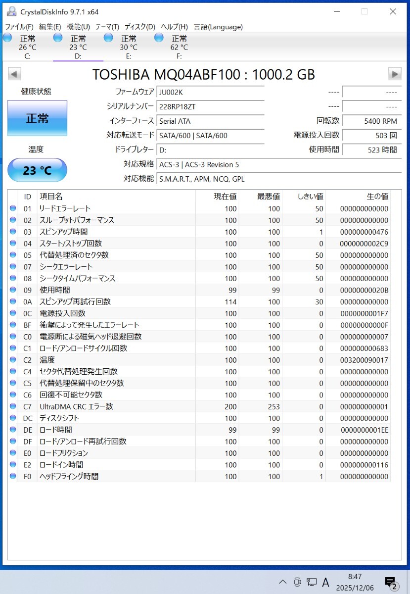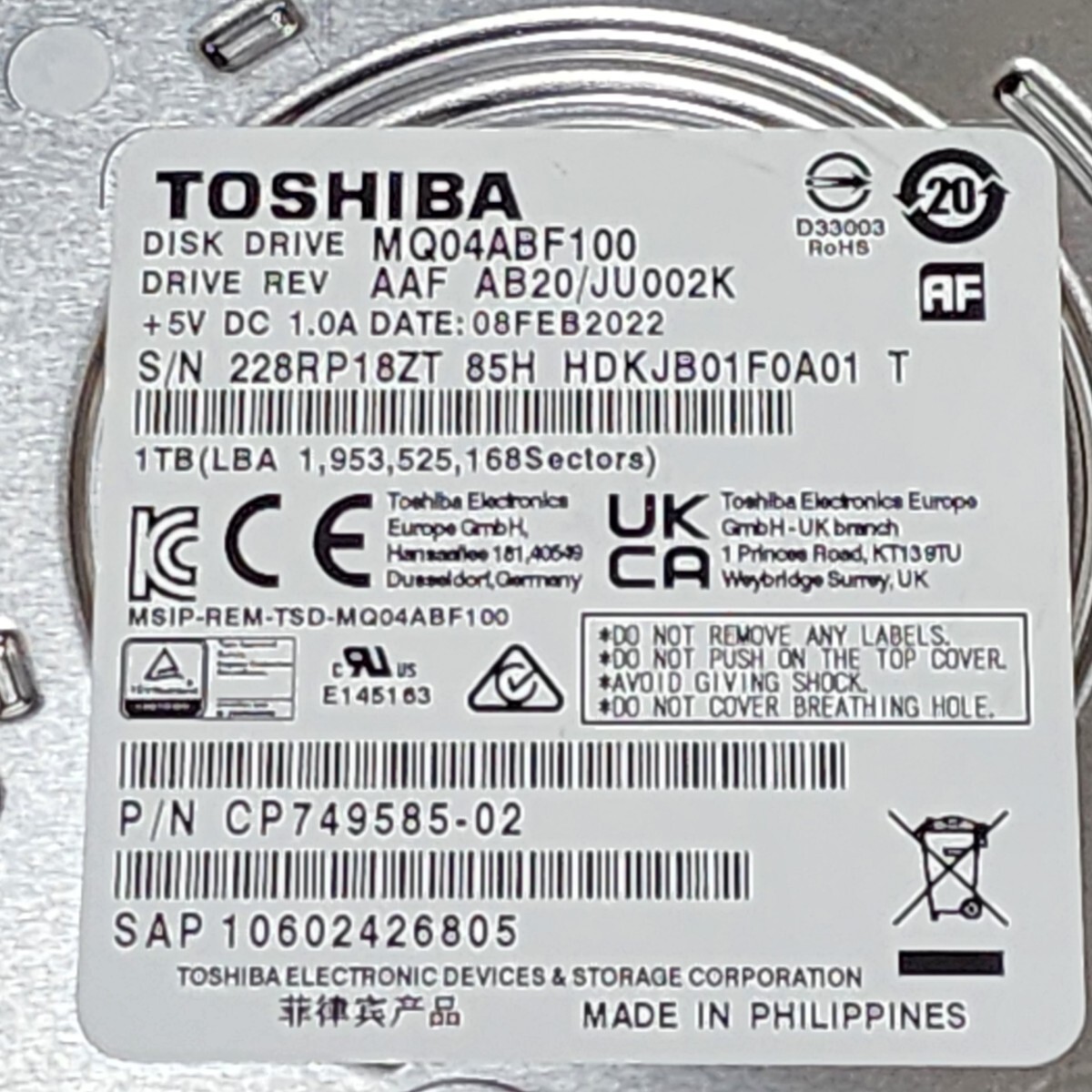 TOSHIBA MQ04ABF100 1000GB/1TB 2.5インチ内蔵HDDの出品です。