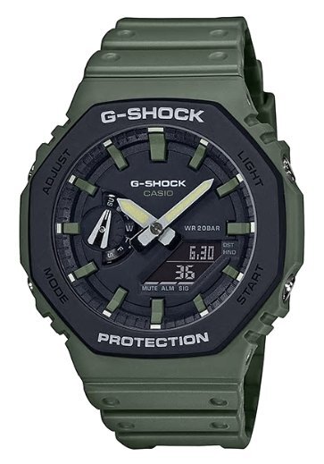究極の強さを求めて進化を続けるタフネスウオッチG-SHOCKの薄型デジタル・アナログコンビネーションモデルGA-2100から、ユーティリティカラーを纏ったNewモデルが登場します。 今回は実用的でストリートファッションにも馴染みやすいユーティリティカラーをベゼル・文字板・バンドに採用。様々なウェアや環境にマッチしながらも、さりげなく個性を主張するデザインに仕上げました。 また、GA-2110SUは新構造の二重成形のベゼルカバーを採用、新たなデザイン進化を果たしました。 薄型ケースと新たなデザインが融合したG-SHOCKのNewモデルの登場です。