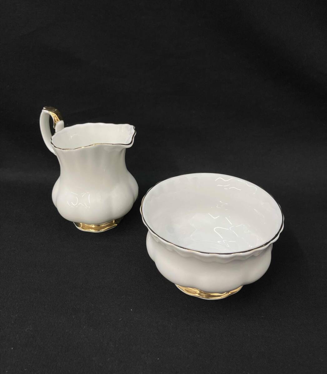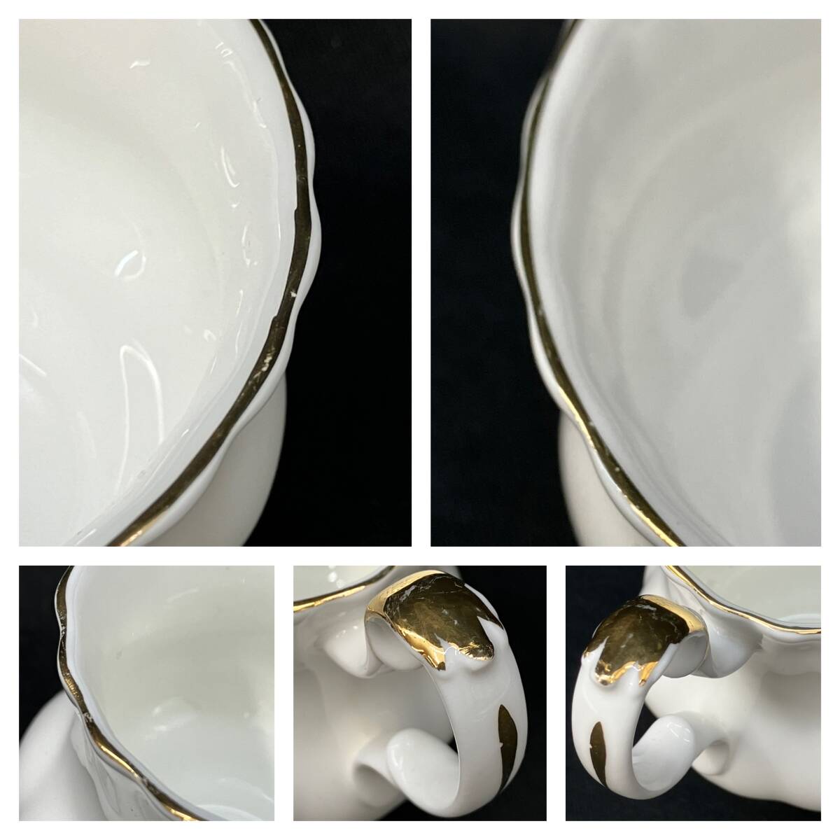 | ※画像はスマートフォンによる撮影の為、実際の色味と若干異なる場合がございます。 ※お使いのPC環境やスマートフォン端末などにより実際の色味と異なる場合もございます。ご了承ください。 ※出品前に商品を確認しておりますが傷など見落としがあるかもしれません。 ※付属品は写真に写っているものが全てです。 サイズ クリーマー 高さ:約8.5 cm 横:約 5.5㎝ 奥行:約9.6cm シュガーポット 高さ:約5.5 cm 口径:約9 cm 口径部分や持ち手の金縁に剥げが見受けられます。 写真は2025年12月6日現在のものです。 状態につきましては、写真をご確認の上ご入札ください。 |