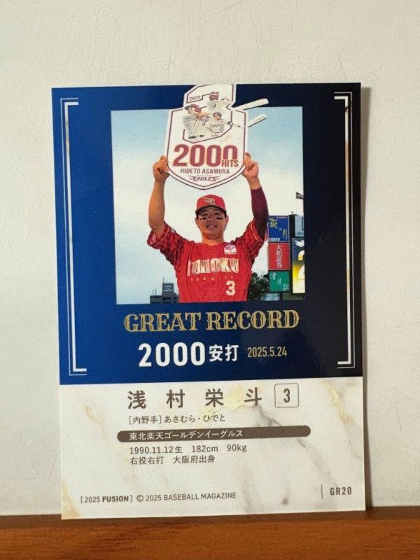 【2025 BBM FUSION】GR20浅村栄斗(東北楽天ゴールデンイーグルス)インサートカード