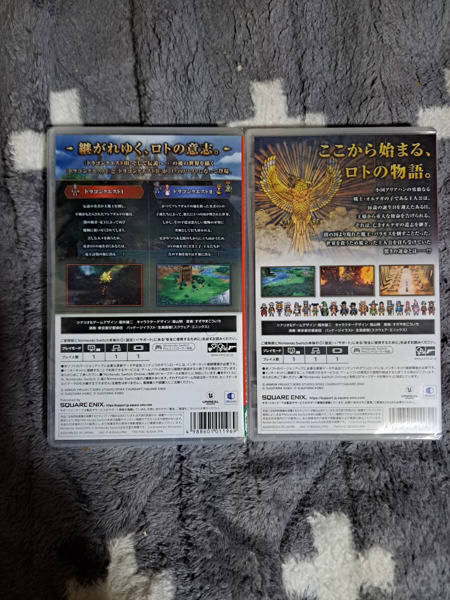 ニンテンドースイッチ版「ドラゴンクエストⅠ&Ⅱ」と「ドラゴンクエストⅢ そして伝説へ…」の2本セットのロト三部作です。さらにe-STORE特典のキャラクター&モンスターアクリルブロックのコンプリートセット・ブック型パッケージ収納ボックス・ ロトの剣のピンズをお付けします。また、BOSSとのコラボ景品のオリジナルちいさな鍋つかみ2種(スライムベス・メタルスライム)もお付けします。全て新品未開封です。入札者の評価が10以下の場合は入札を取り消す場合があります。予めご了承ください。