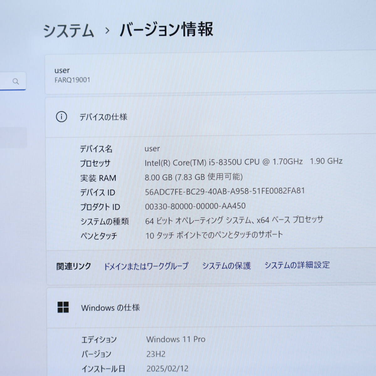 ★超美品 高性能8世代4コアi5!SSD128GB メモリ8GB★Q738/SB Core i5-8350U Webカメラ TypeC Win11 MS Office2019 H&B ノートPC★P91496