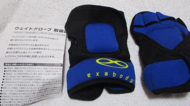 exabody ウエイトグローブ 0.5kg×2点 説明書付きですが、説明書にはスレ、ヨレなど傷み有ります。