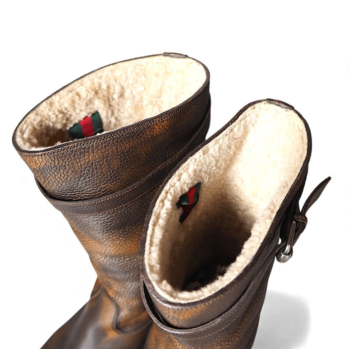| 商品名 | 4-SD072◎ グッチ GUCCI エイジング レザー ムートン ブーツ ブラウン 9 メンズ 正規品 |