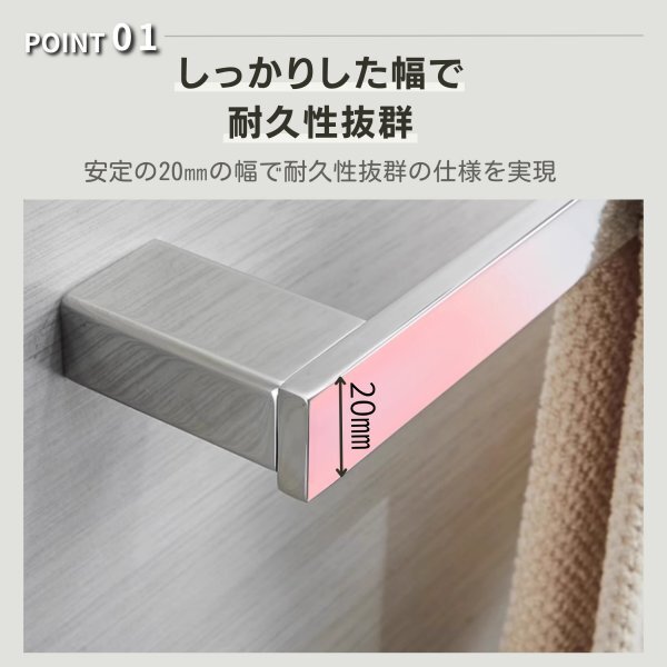 ステンレス製 タオル バー 壁掛け式 50cm