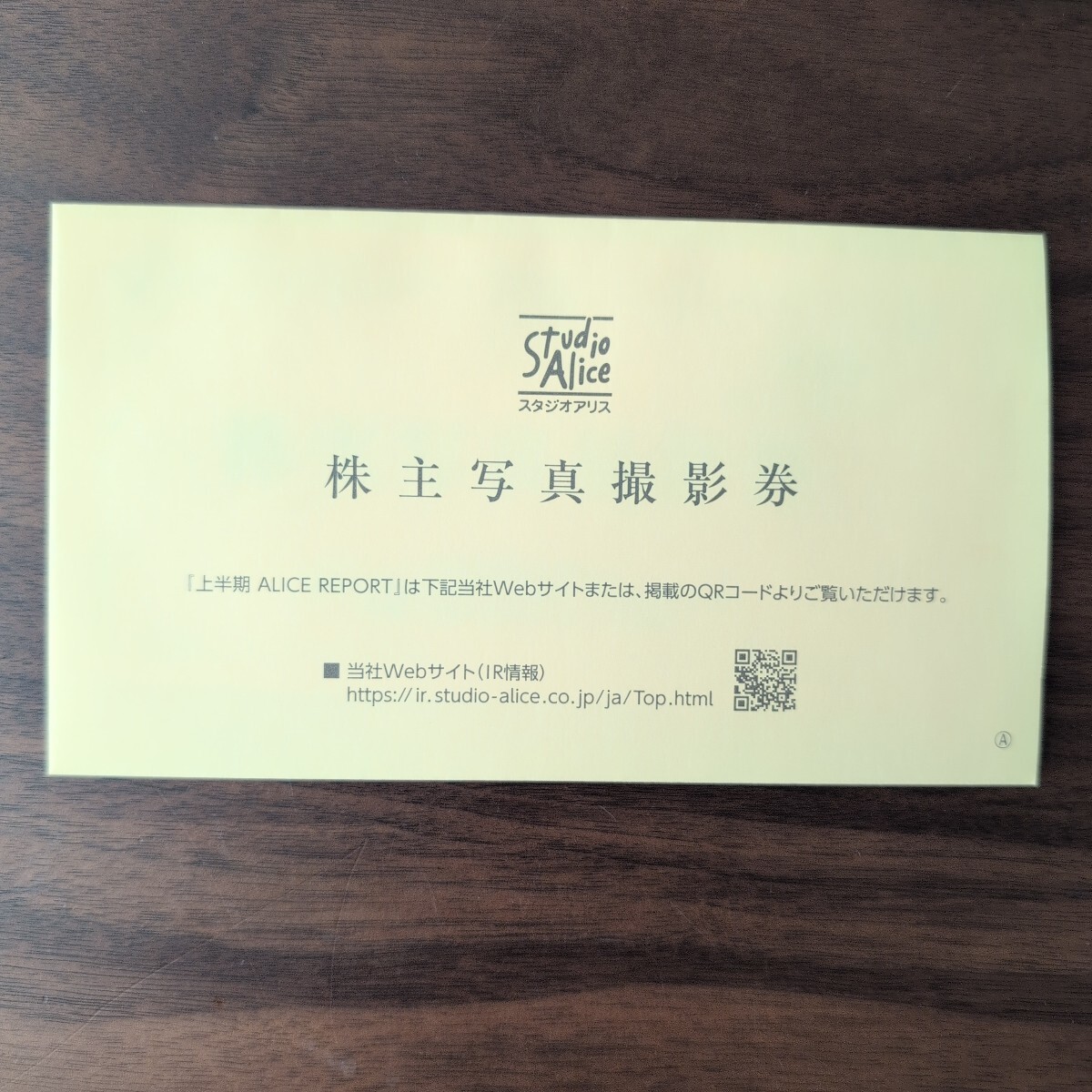 株式会社スタジオアリスの株主に配られる株主優待券です。
