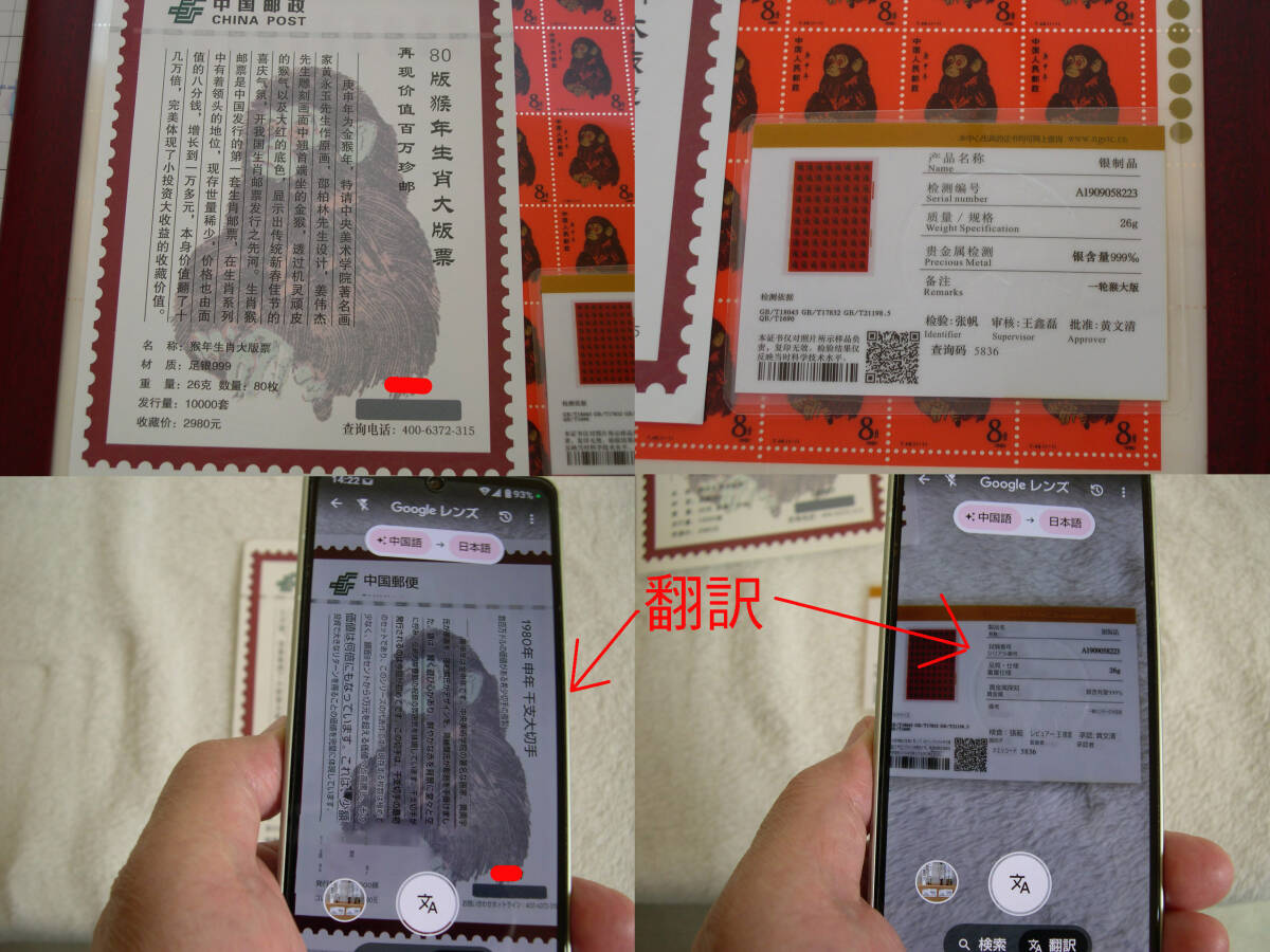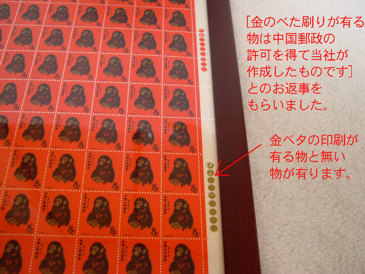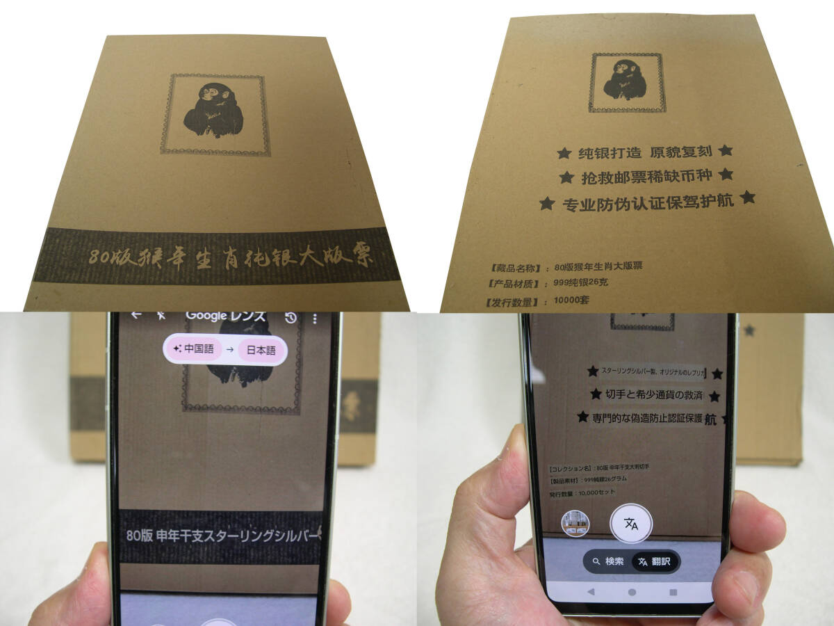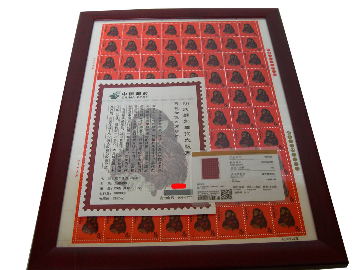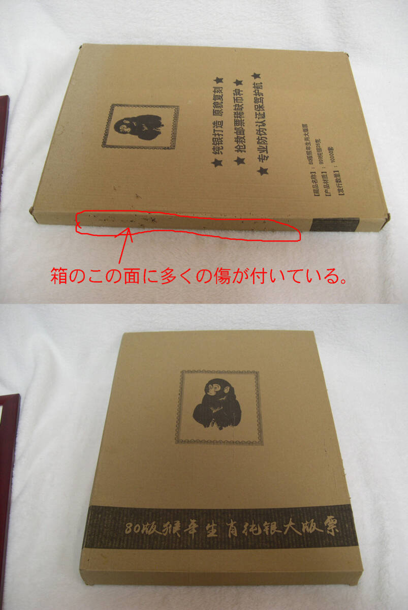 | T.46.赤猿レプリカ 復刻記念シート 中国干支記念切手赤猿 純銀製 父のコレクションでした。 製作会社に問い合わせたところ、中国郵政から許可を得て作成したレプリカとの返事をもらいました。 このレプリカの偽物が出ているとの事です。 本物は金のべた刷りが入っていて、このレプリカの偽物は黒か黄色の網になっているとの事でした。 本品はレプリカでもレアな方の品物だと思われます。 純銀製26g鑑定書付き。 数年時間の経った物で、外箱に汚れ、傷が多少あります。 中身は綺麗です。 状態の綺麗さ良し悪しの基準は人それぞれなので、あくまでも古い物ですから、 完璧な綺麗さや新品同等の綺麗さをお考えの方は入札をお控えください。 現状でのお渡しとなります。 喫煙無し。ペット無し。 無料のGoogleドライブで こちら から多くの写真を拡大写真でご覧頂けます。 ●以上商品は1枚目の写真に写っている物です。 ●商品の性質上ノークレーム、ノーリターンでお願い致します。 ●ユーパックのおてがる版でお送りします。 ●当方埼玉県富士見市からの発送になります。 ●領収書の発行は致しません。支払い記録のプリントアウトで、領収書と認められております。 | |
