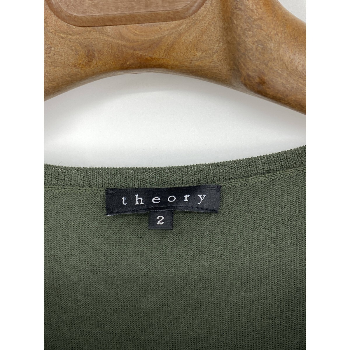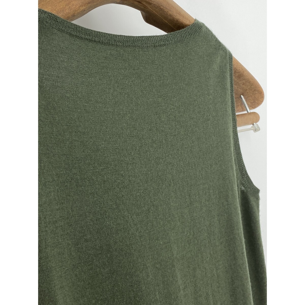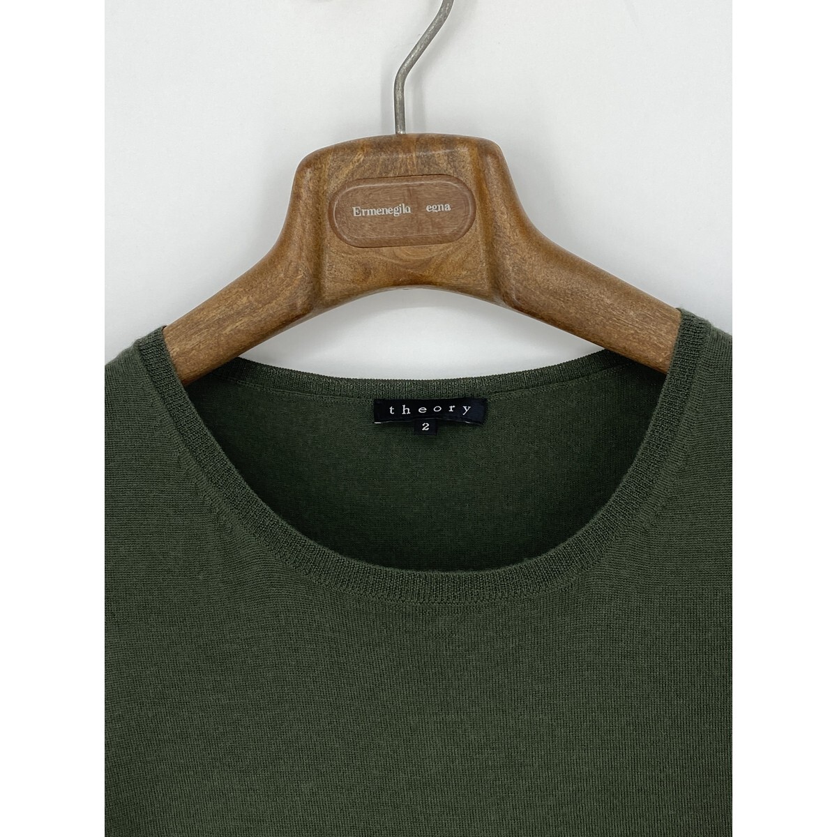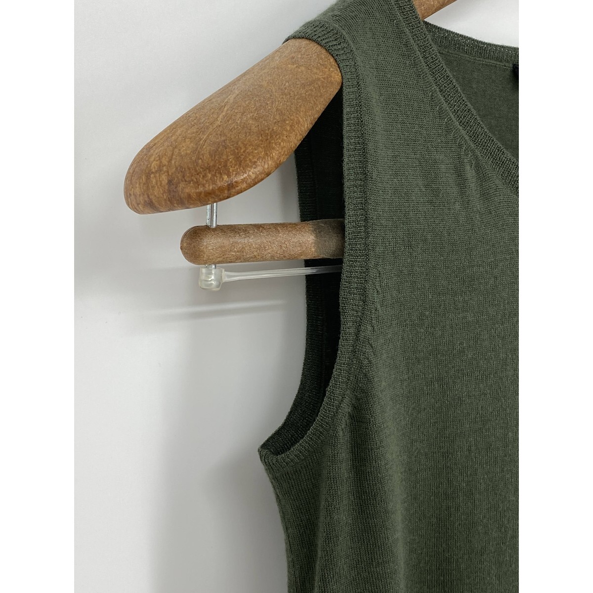 B0683/極美品 theory セオリー ウール クルーネック 無地 ノースリーブ ニット リブ セーター ベスト ジレ 2 M カーキ 緑 レディース