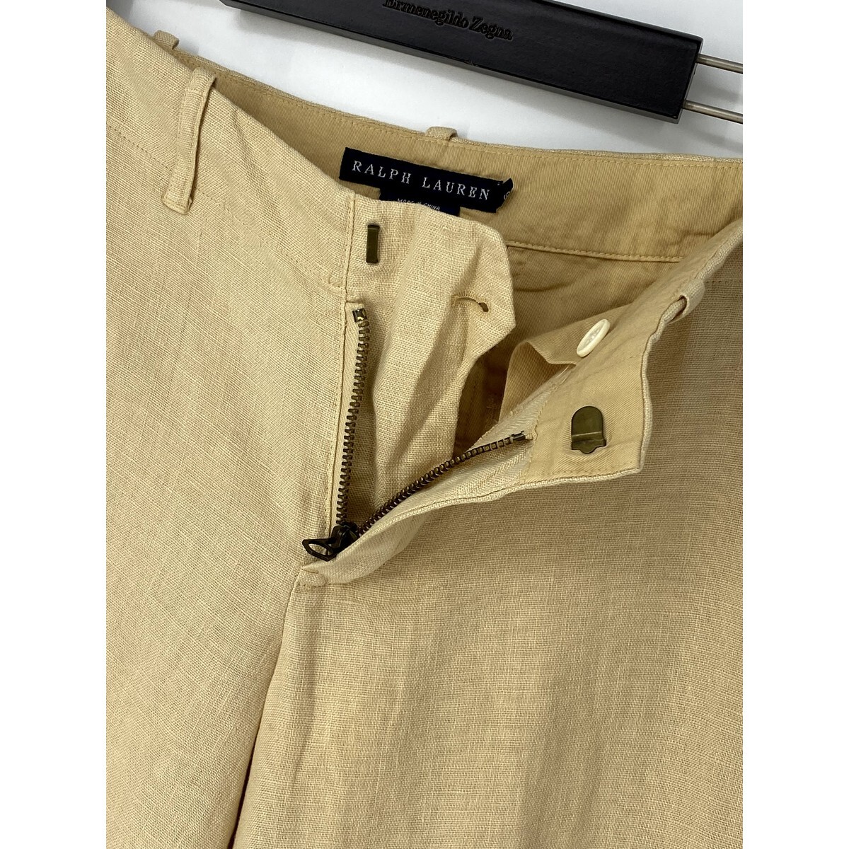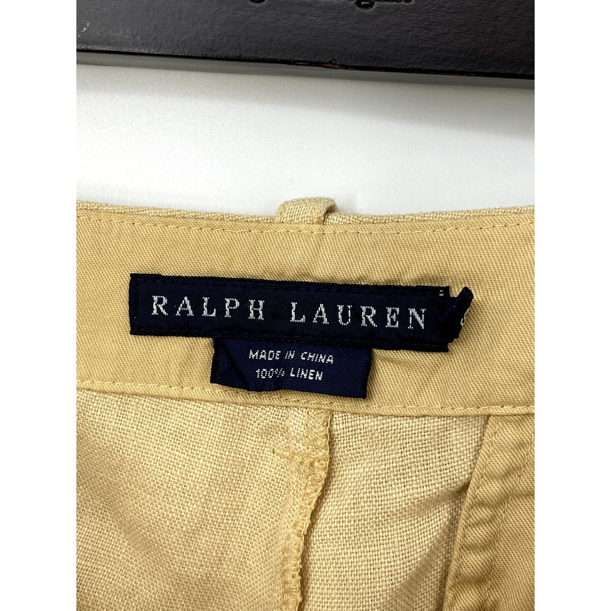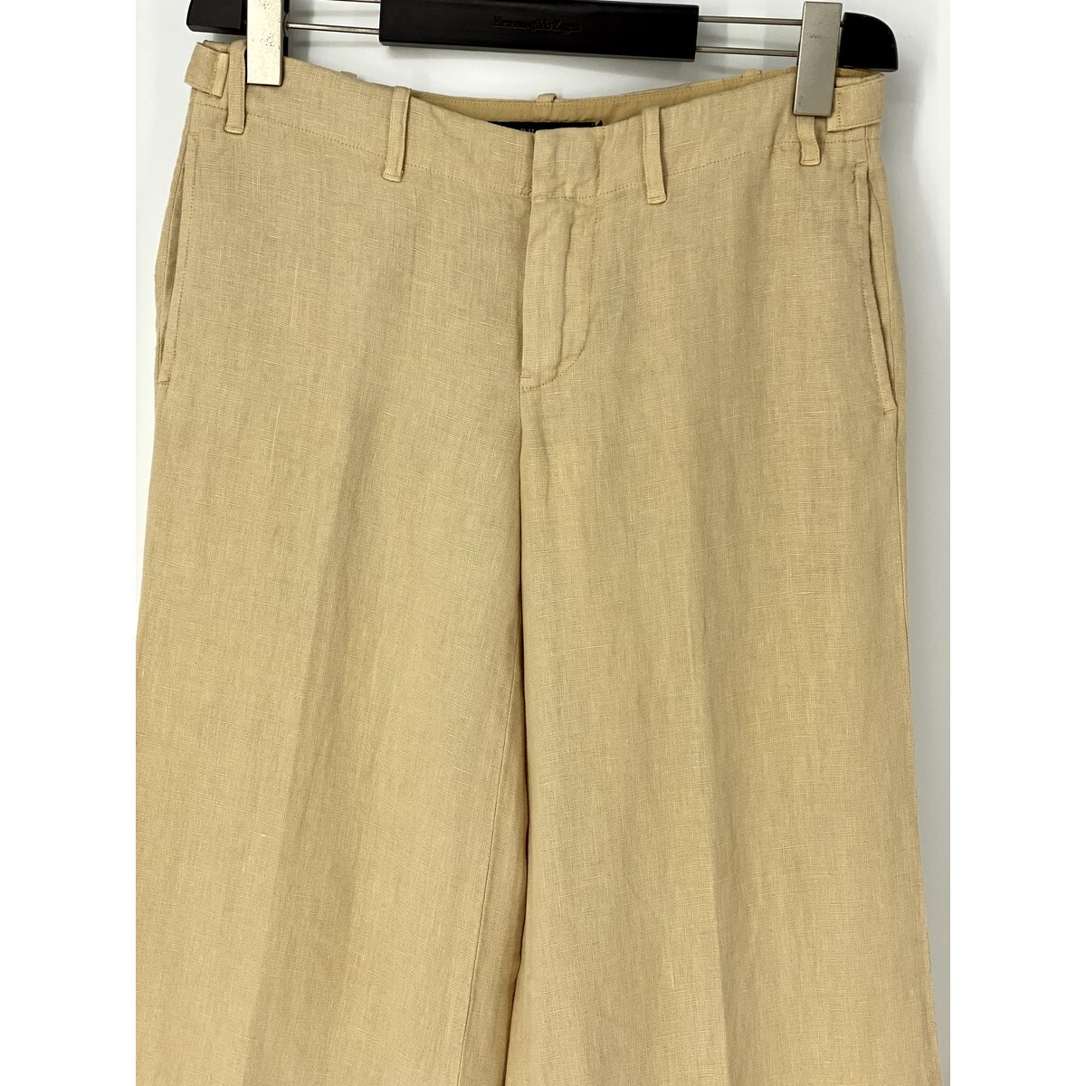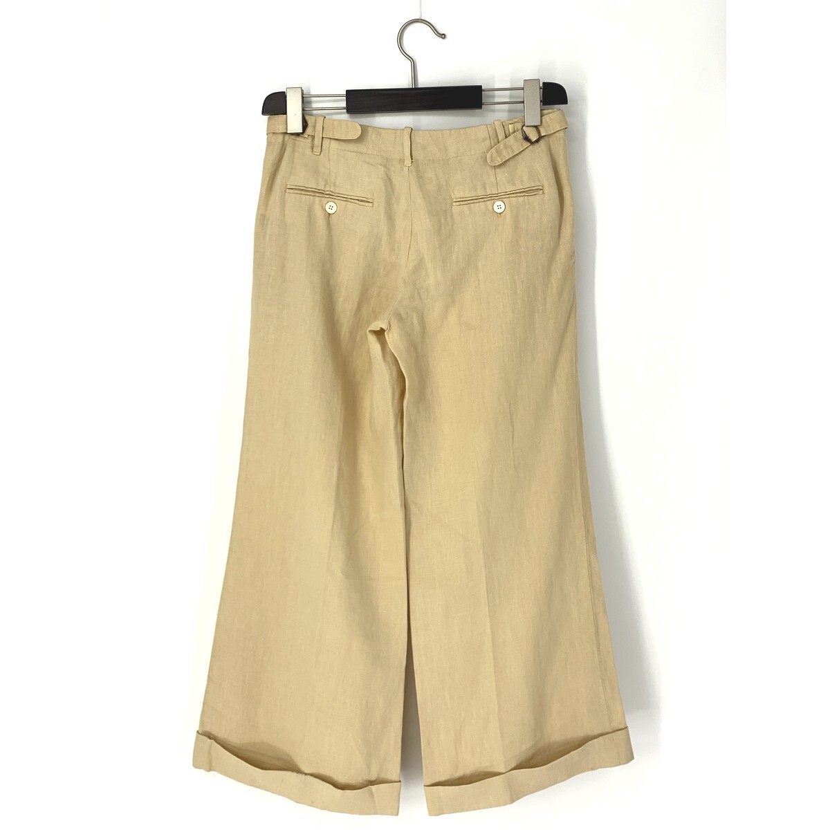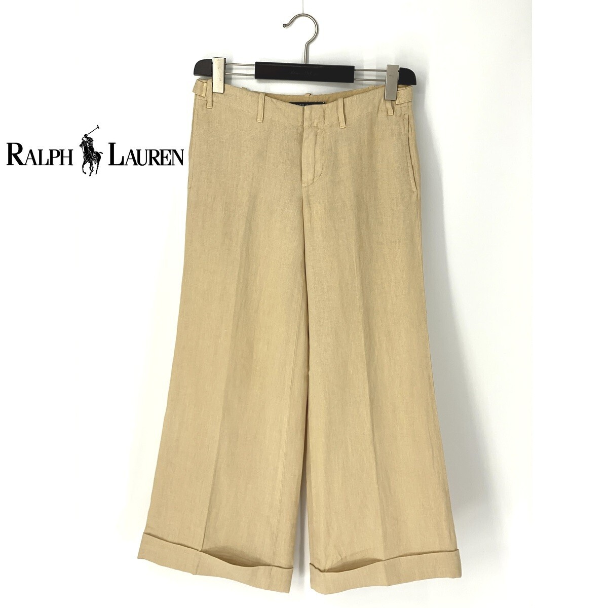 A7028/美品 春夏 RALPH LAUREN ラルフローレン リネン100% おしゃれ ストレート ガウチョ スーパーワイドパンツ 9 ベージュ/レディース