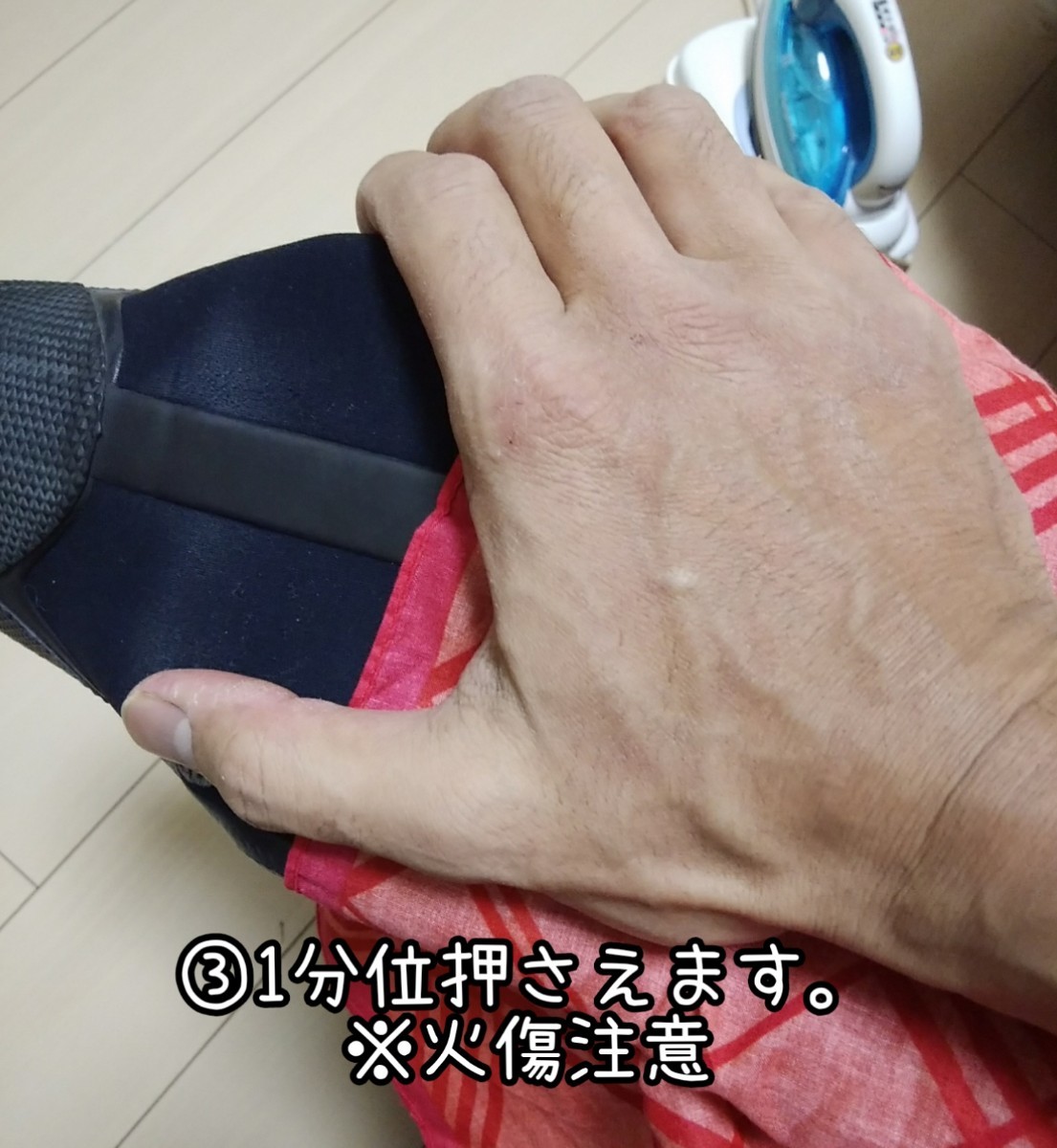 アイロンの温度は低~中で、あて布をあてて使用してください。