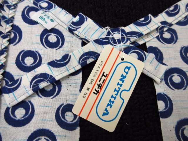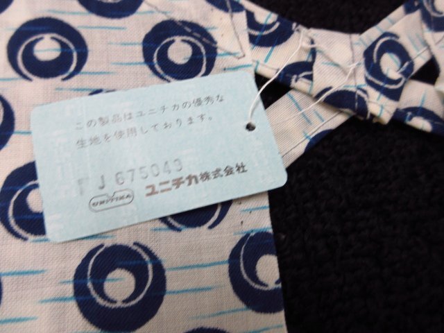 タグ付き未使用保管品、ユニチカ製の昭和レトロな割烹着です。