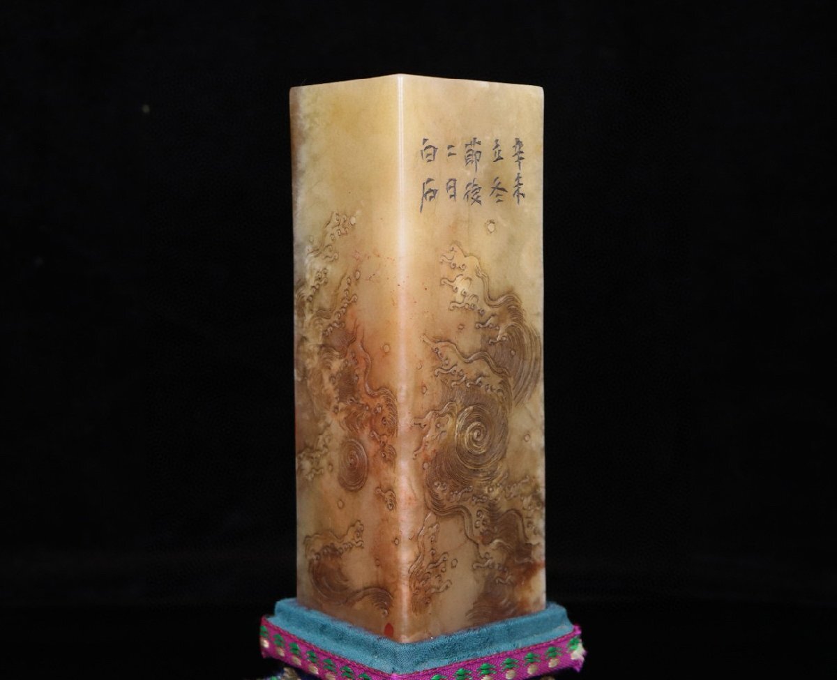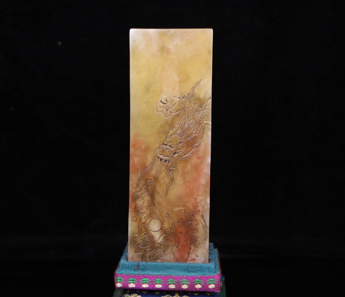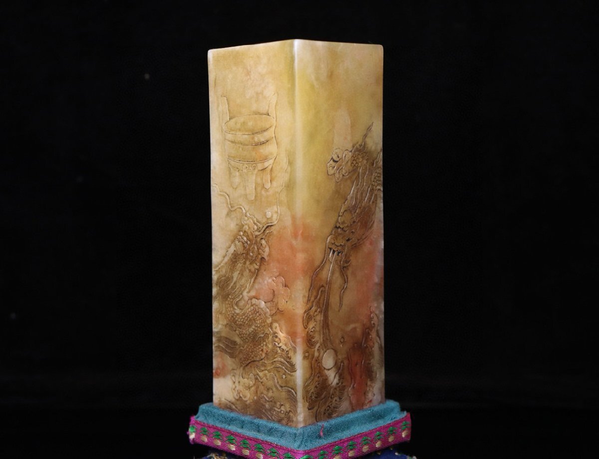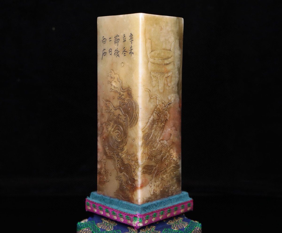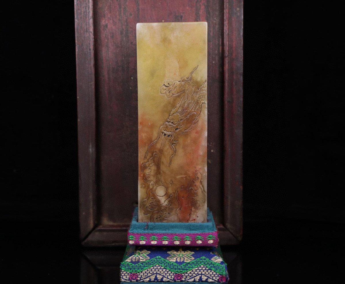 【安】金石篆刻 白石銘 寿山田黄石彫 龍紋印章 印鑑 共箱 極細工 古置物 古擺件 中国古美術 時代物 335 サイズ(約寸) |