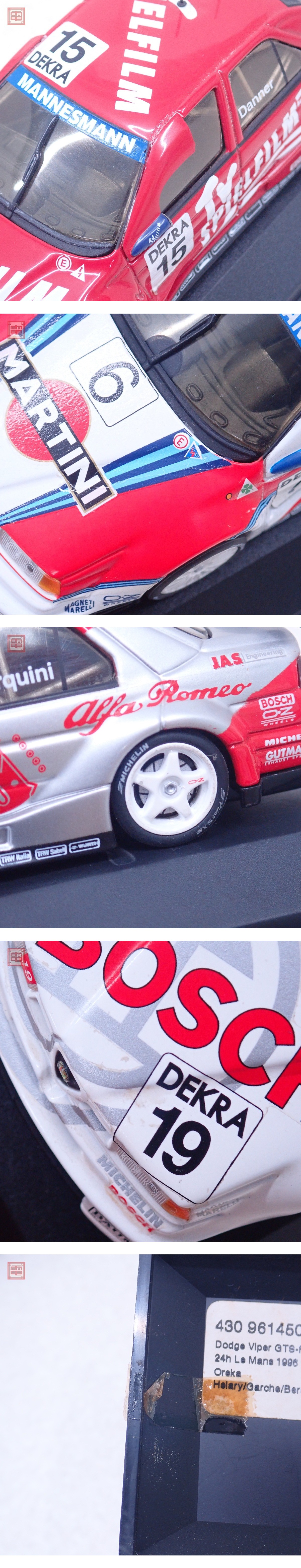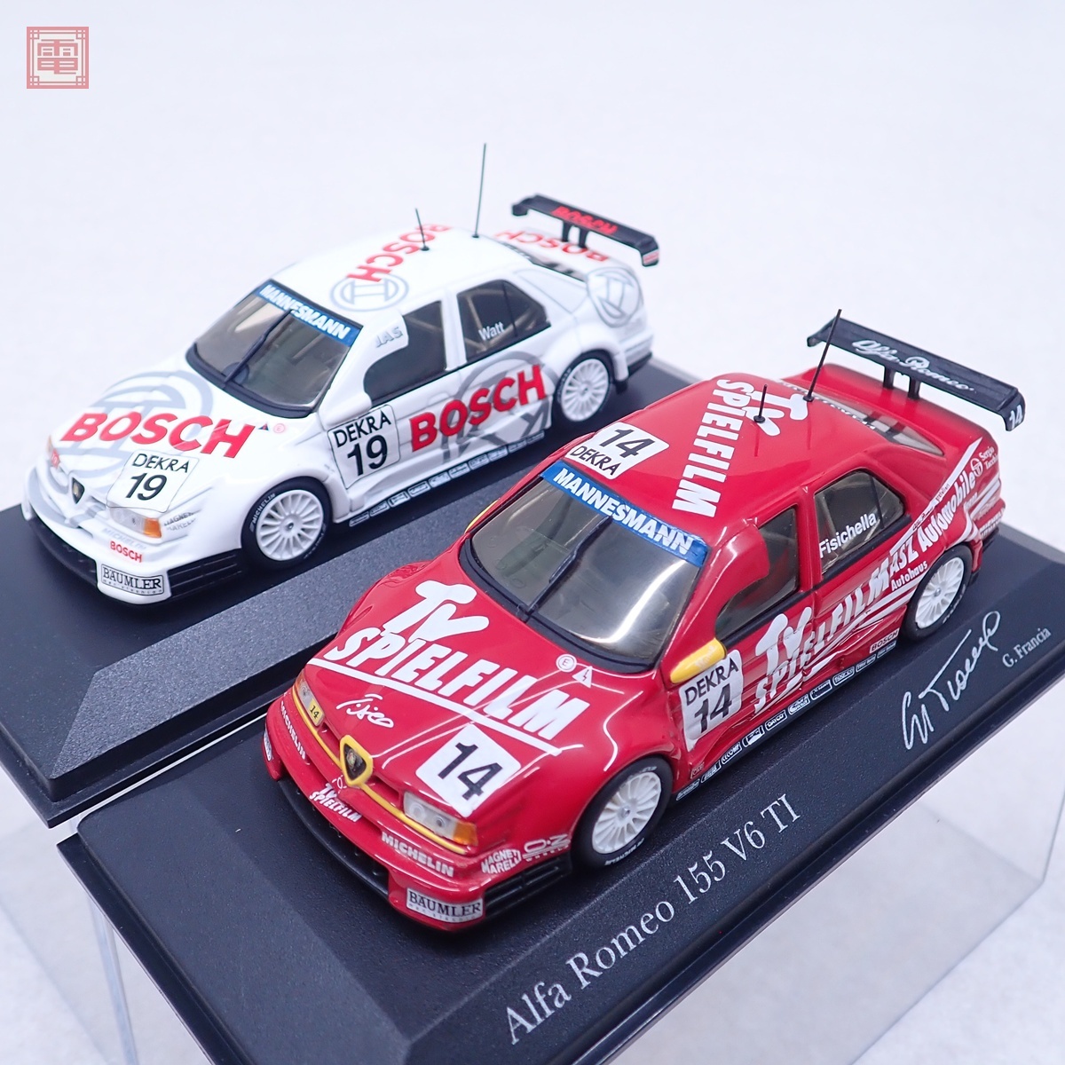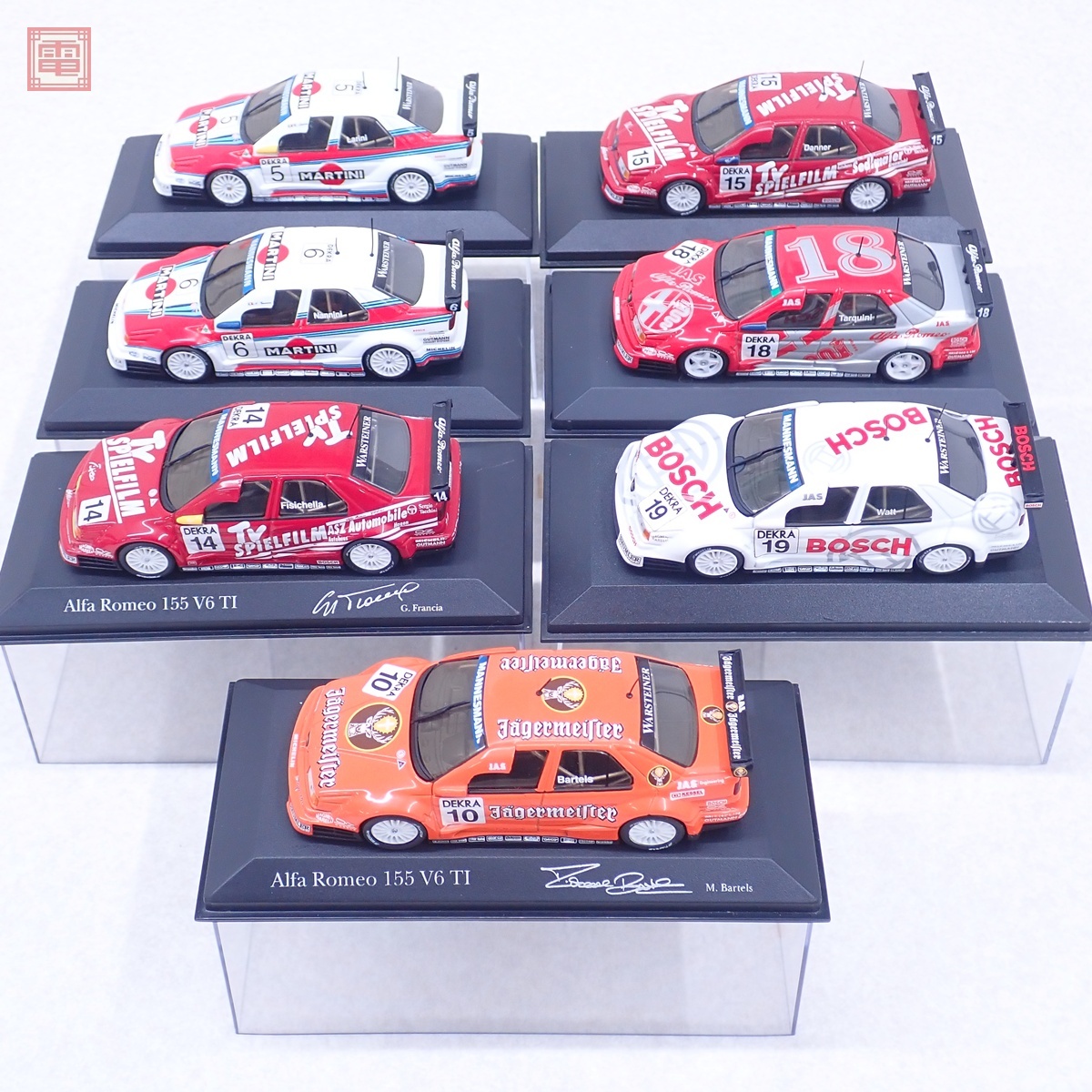 現状品 ミニチャンプス 1/43 アルファ ロメオ 155 V6 TI #5 DTM 1996/Team Alfa JAS Watt #19 等 まとめて7台セット ■こちらの商品は【現状品】のため、どの様な不具合が生じましても当店では交換・返金・返品等の対応はできません。 ■ご理解ご納得いただける方のみご入札をお願いいたします。 ※外箱欠品、台座のネジ欠品などのため【現状品】として出品いたします。 ■ケースにスレ、キズ、汚れ、テープの貼付、貼付跡があります。 ■ボディにスレ、キズ、汚れ、塗装ムラ、塗装浮きがあります。 ■デカールにヨレ、シワがあります。 ■窓にスレ、キズ、汚れがあります。 ■タイヤに汚れがあります。 ■ホイールにキズがあります。 ■台座のネジが欠品しているため外れているものがあります。 ■台座に固定されているものは、外さずに行える範囲でのチェックを行っています。 ■写真のものが全てです。付属物の有無や状態については写真からご判断ください。 ■付属物については細かいチェックはしておりませんので、万が一、欠品があったり余計な物が入っていたとしてもご了承ください。 ■商品到着後、当店の保証期間中は、商品及び箱や取説、付属品などを1つでも廃棄や破損をしないようにお願い致します。廃棄や破損をした場合、商品に問題があった場合でも対応や返金などの対処ができなくなります。 ■商品によりますが、発売されてから10年以上経過している中古品である事をご理解頂いた上でご入札をお願い致します。なお、新品や美品、また特記事項がある場合は別途明記します。 | |||