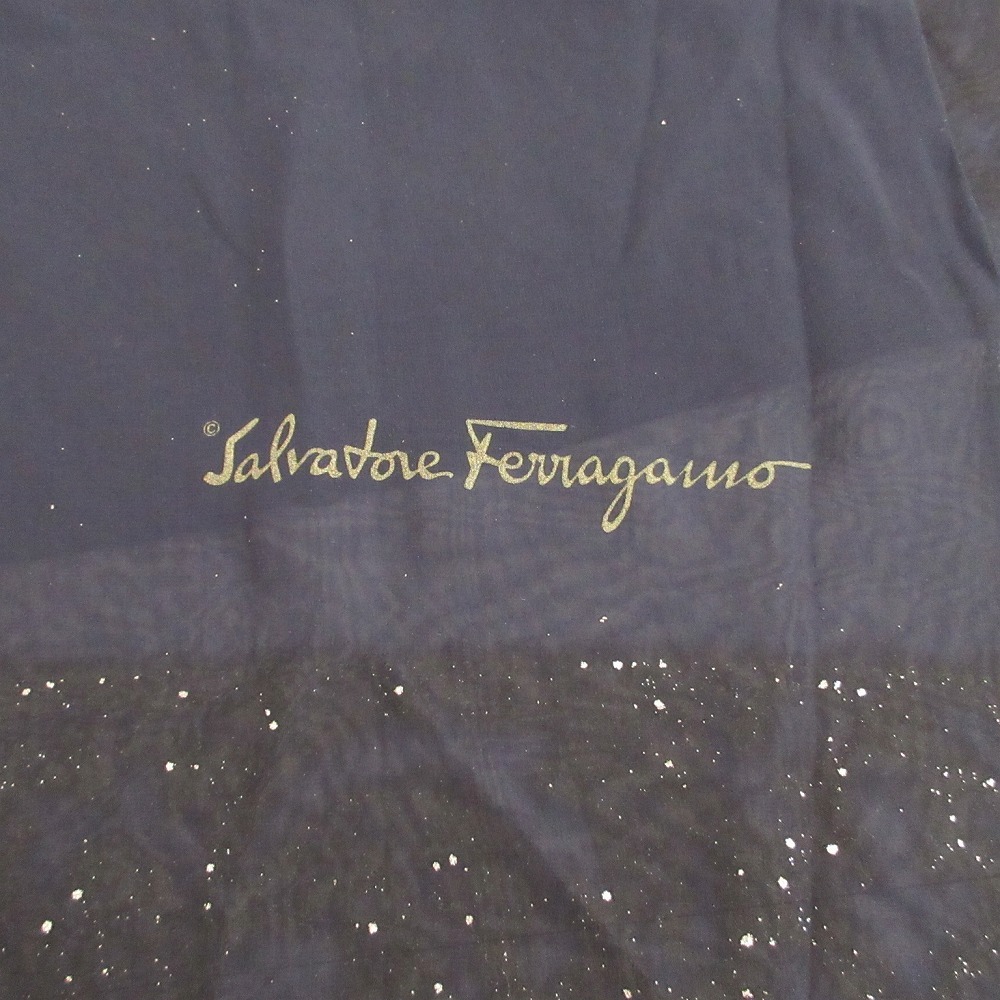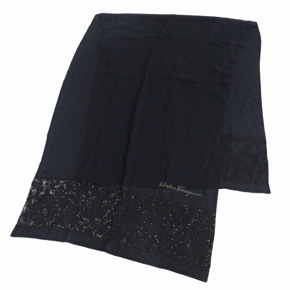 | 【SALVATORE FERRAGAMO サルヴァトーレ フェラガモ シルク ラメストール ネイビー サイズ65×180cm レディース】 | |