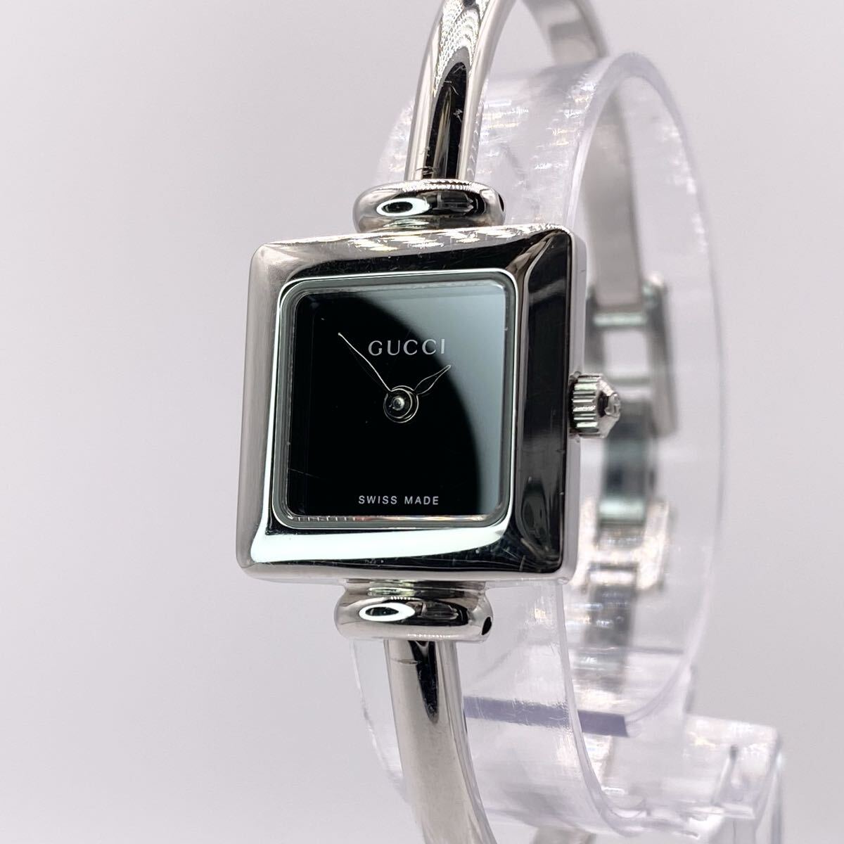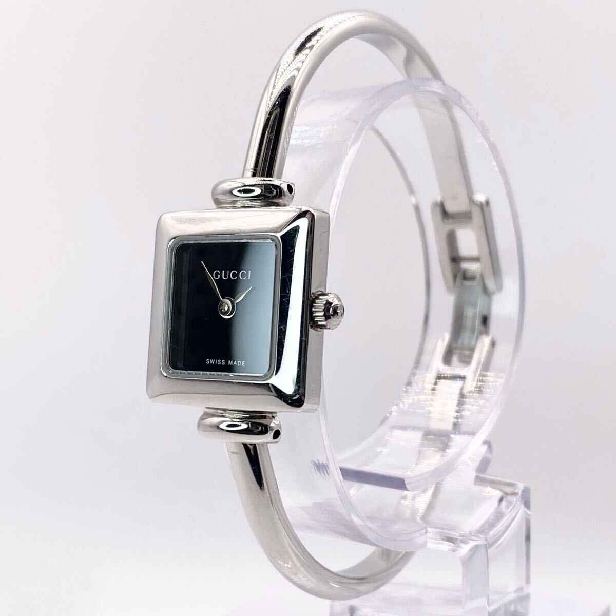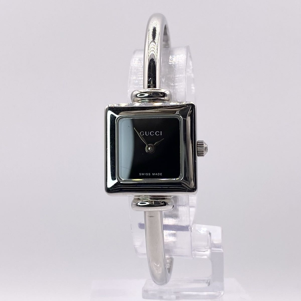 美品/稼働 1900L バングルウォッチ 黒文字盤 インターロッキング スクエア 腕時計 クォーツ スチールベルト ブレスレット アクセサリー レディース