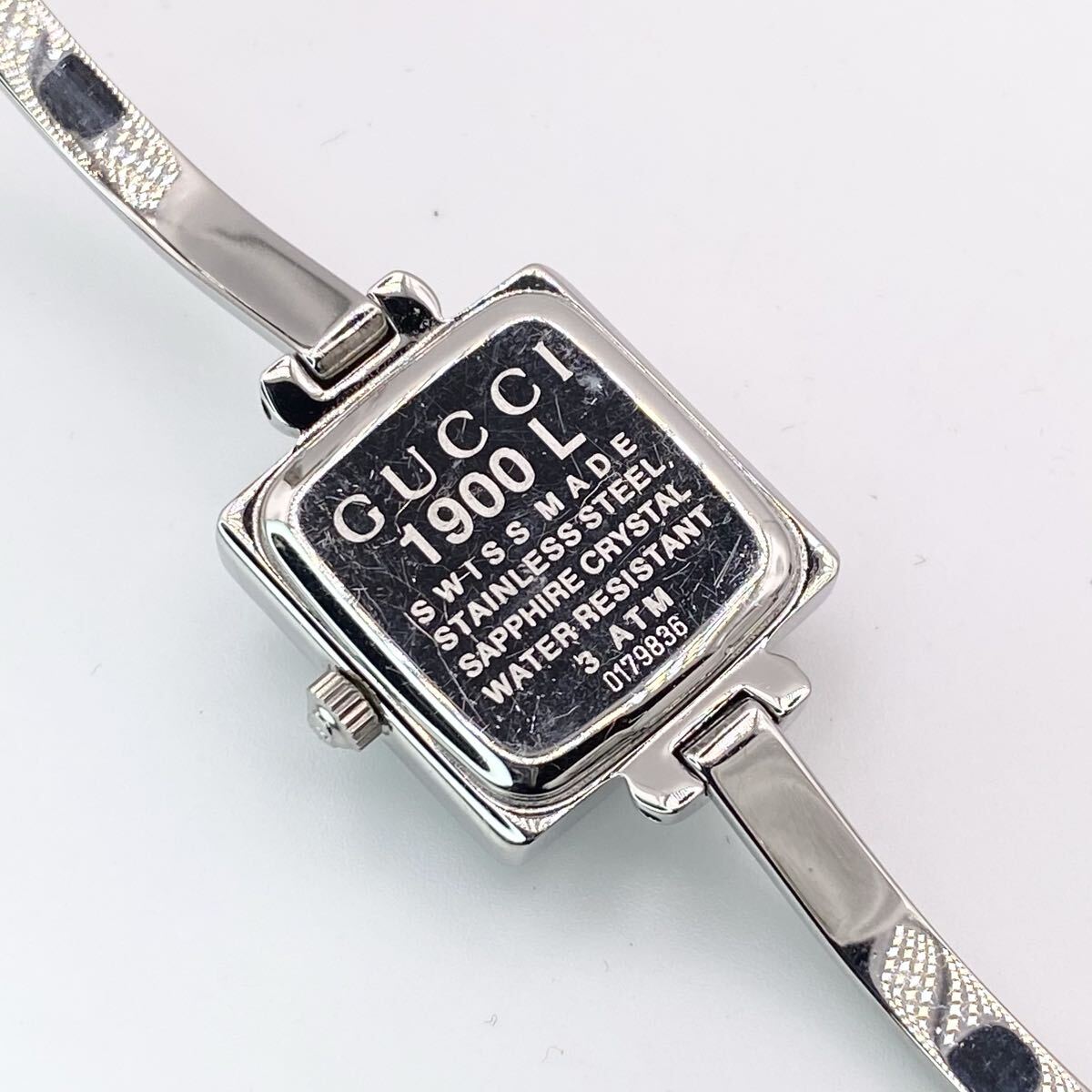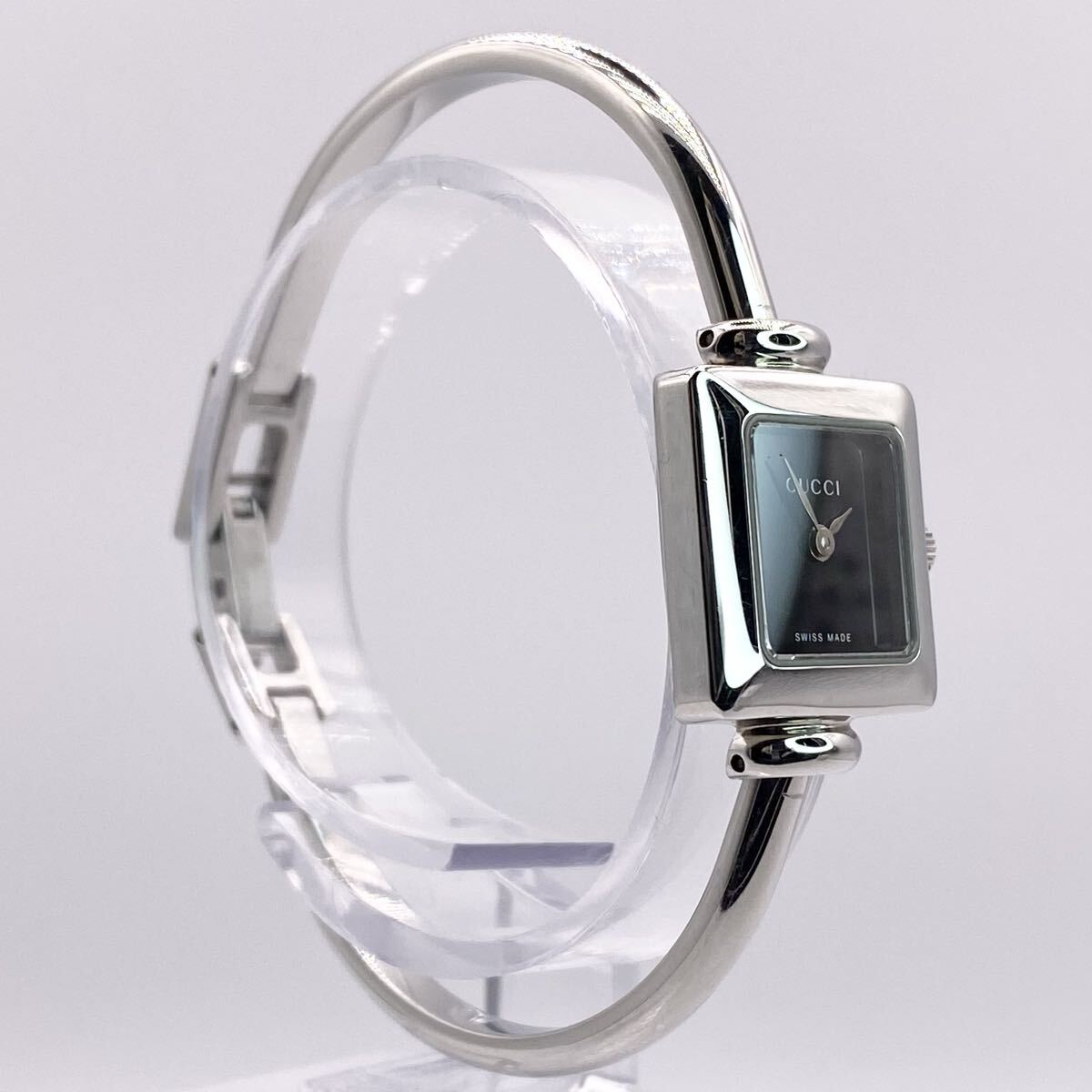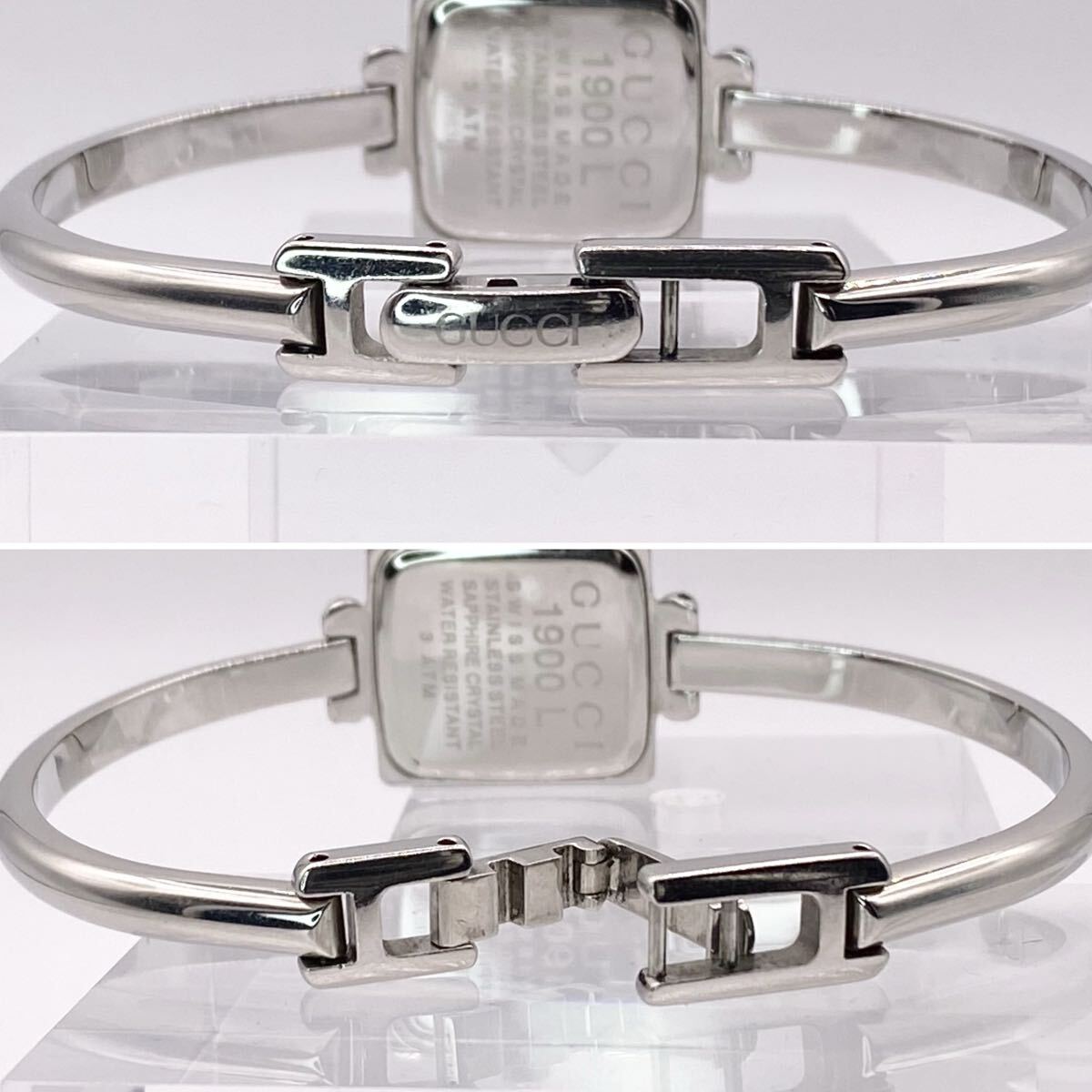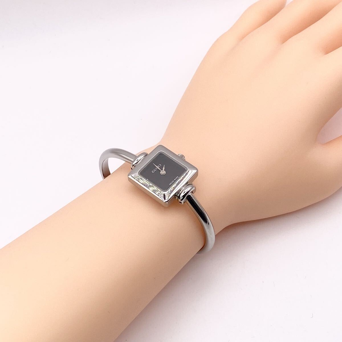 美品/稼働 1900L バングルウォッチ 黒文字盤 インターロッキング スクエア 腕時計 クォーツ スチールベルト ブレスレット アクセサリー レディース