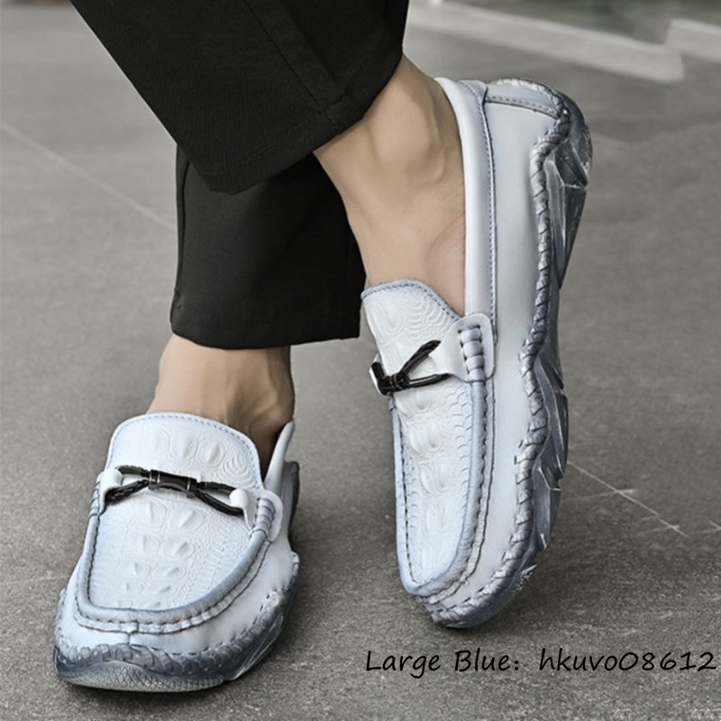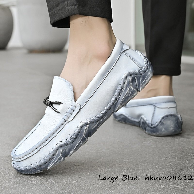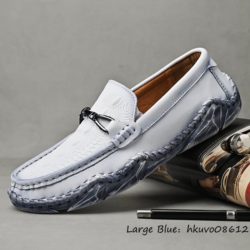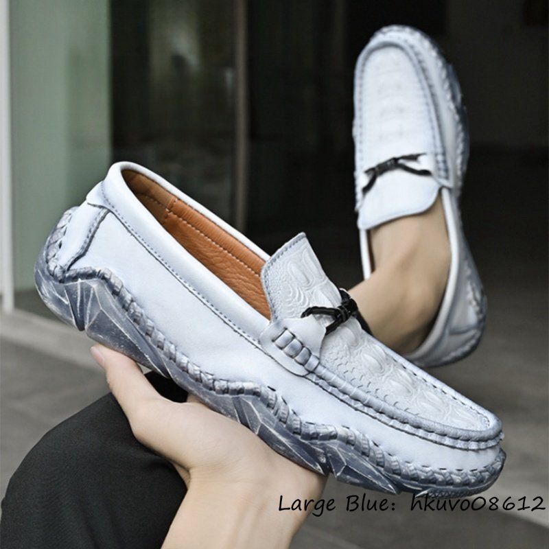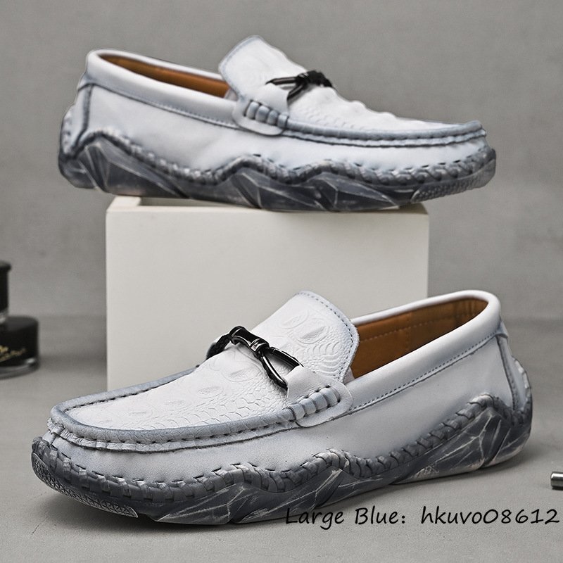 高級品■新品 牛革 ドライビングシューズ メンズ 鰐柄 手作り 本革 スリッポン ローファー レザーシューズ 紳士靴 超軽量 白/灰 27.5cm