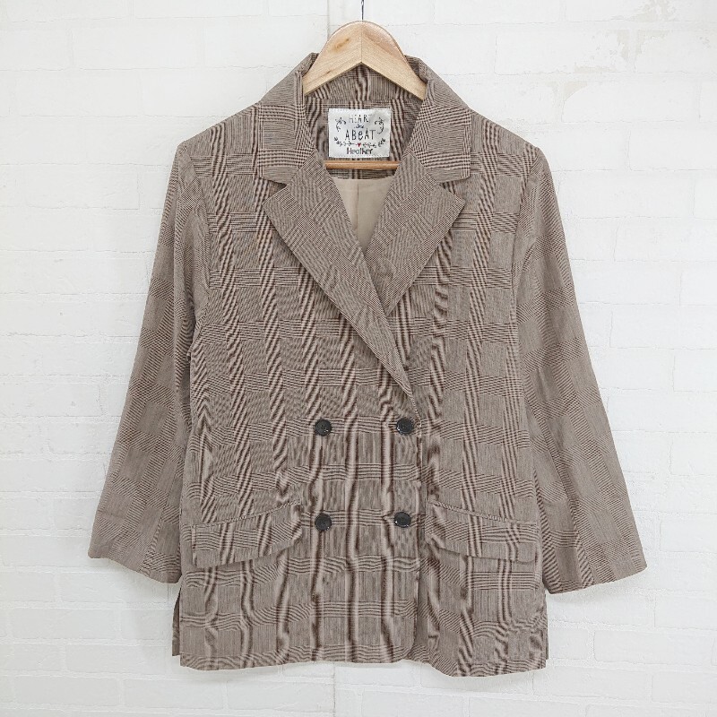 ◇ Heather ヘザー ダブル4B チェック 長袖 ジャケット サイズF ブラウン レディース E