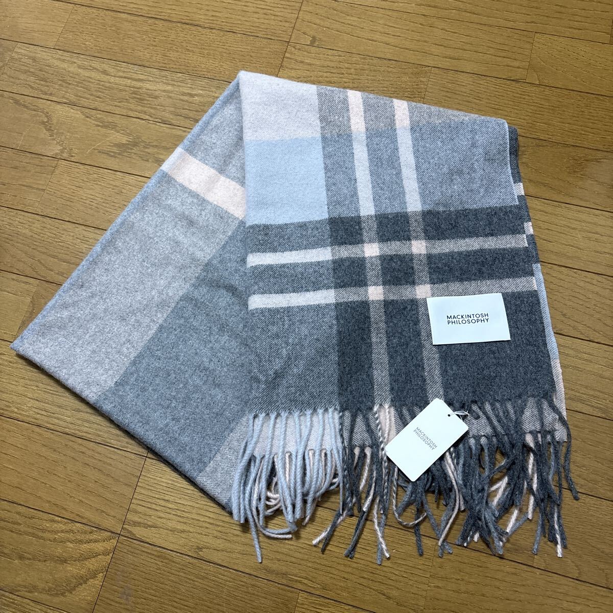 タグ付きのMACKINTOSH PHILOSOPHYのチェック柄マフラーです。