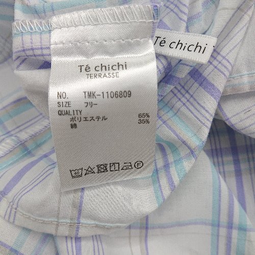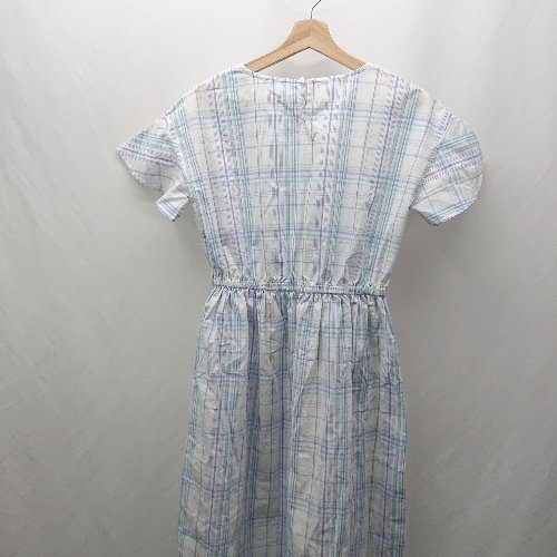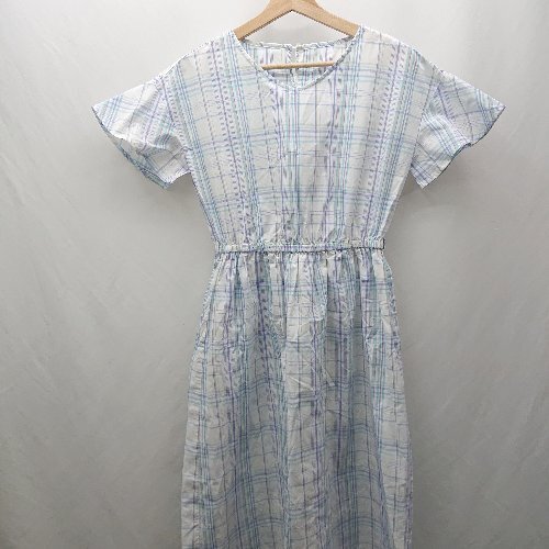 ◇ ⊂◎ Techichi テチチ チェック柄 半袖 ひざ下丈 ワンピース サイズF ライトブルー レディース E