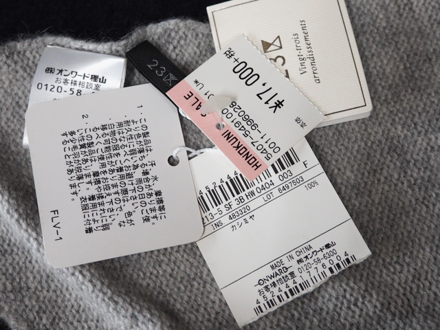 タグ付き 未着用 23区 ストール カシミヤ100% オンワード樫山 定価:17,000円+税 ライトグレー系 ショール マフラー 防寒具
