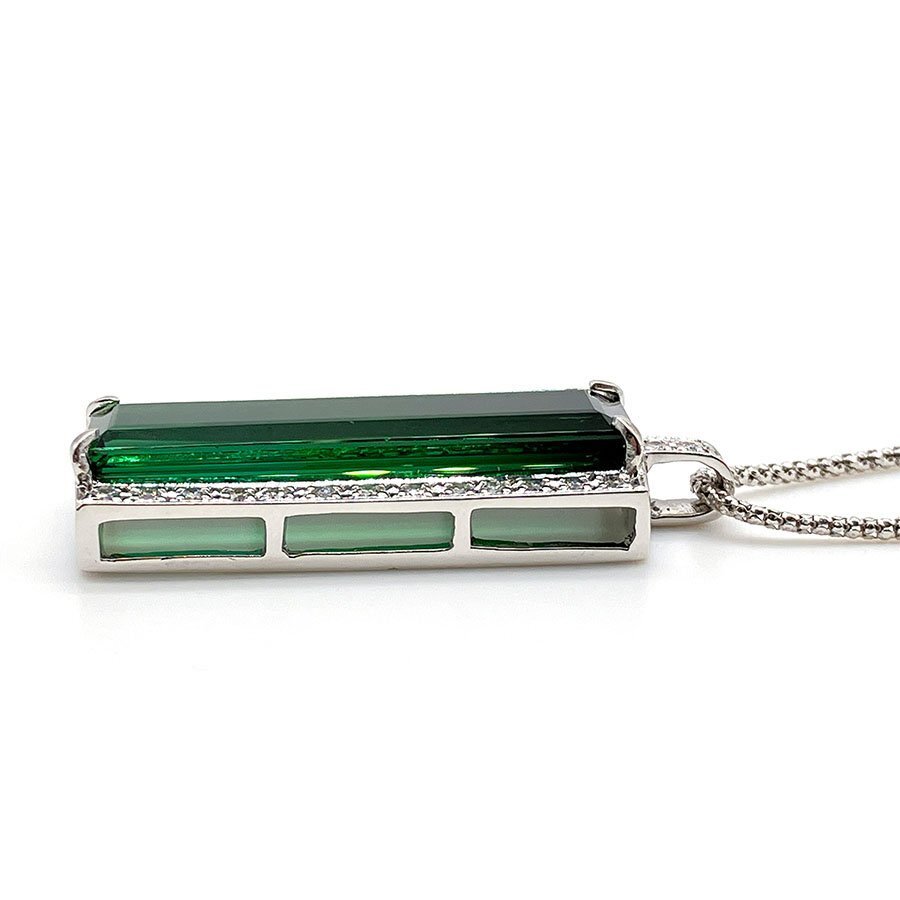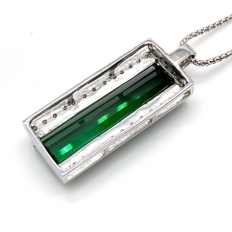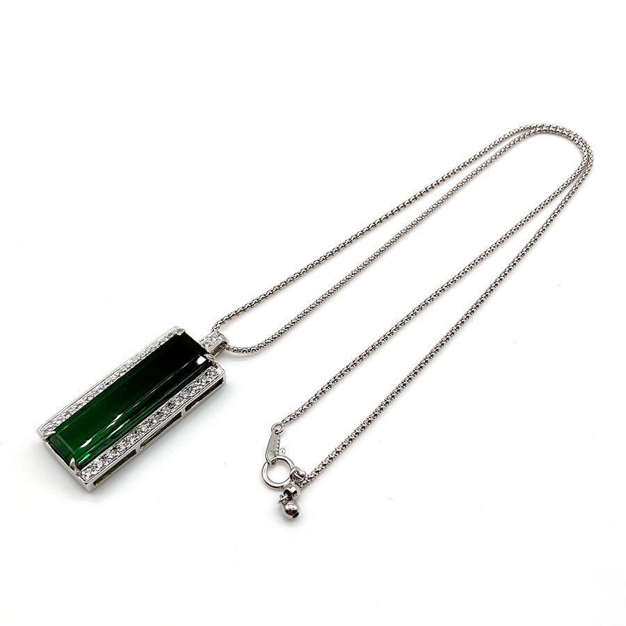 g21577 K18WG グリーンガーネット11.30ct D0.31ct ネックレス USED 美品 12.0g 46.5cm アジャスター付 ソーティング付