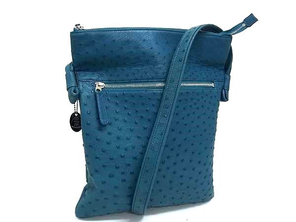 1円 ■極上■本物■JRA公認■極美品■ BAGFAN バッグファン IKESY Utd オーストリッチ クロスボディ ショルダーバッグ ブルー系 GA6665