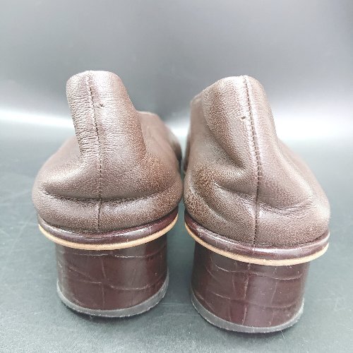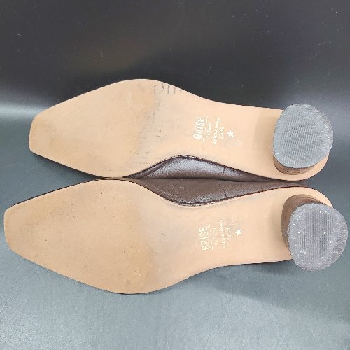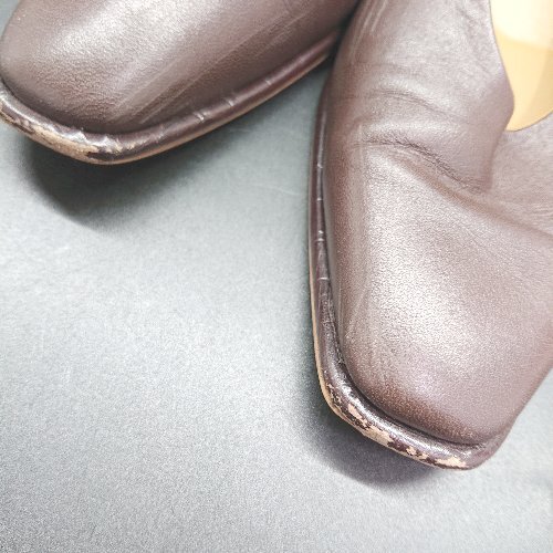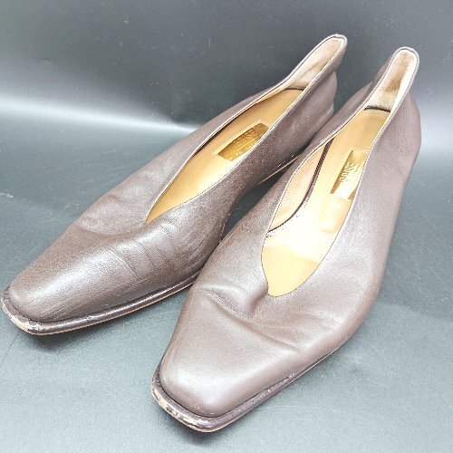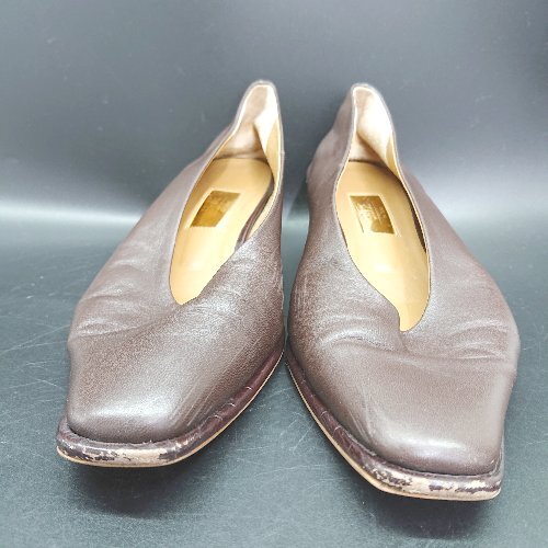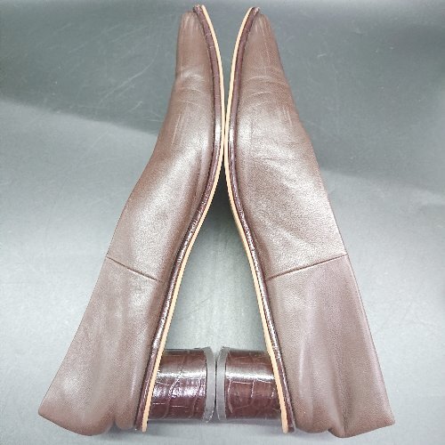 ◇ Θ ルタロン 高級感 ナロースクエアシームフラットパンプス サイズ23.5cm ブラウン系 レディース E