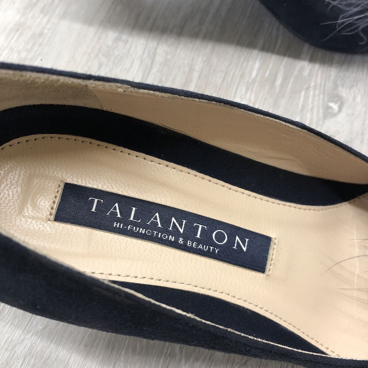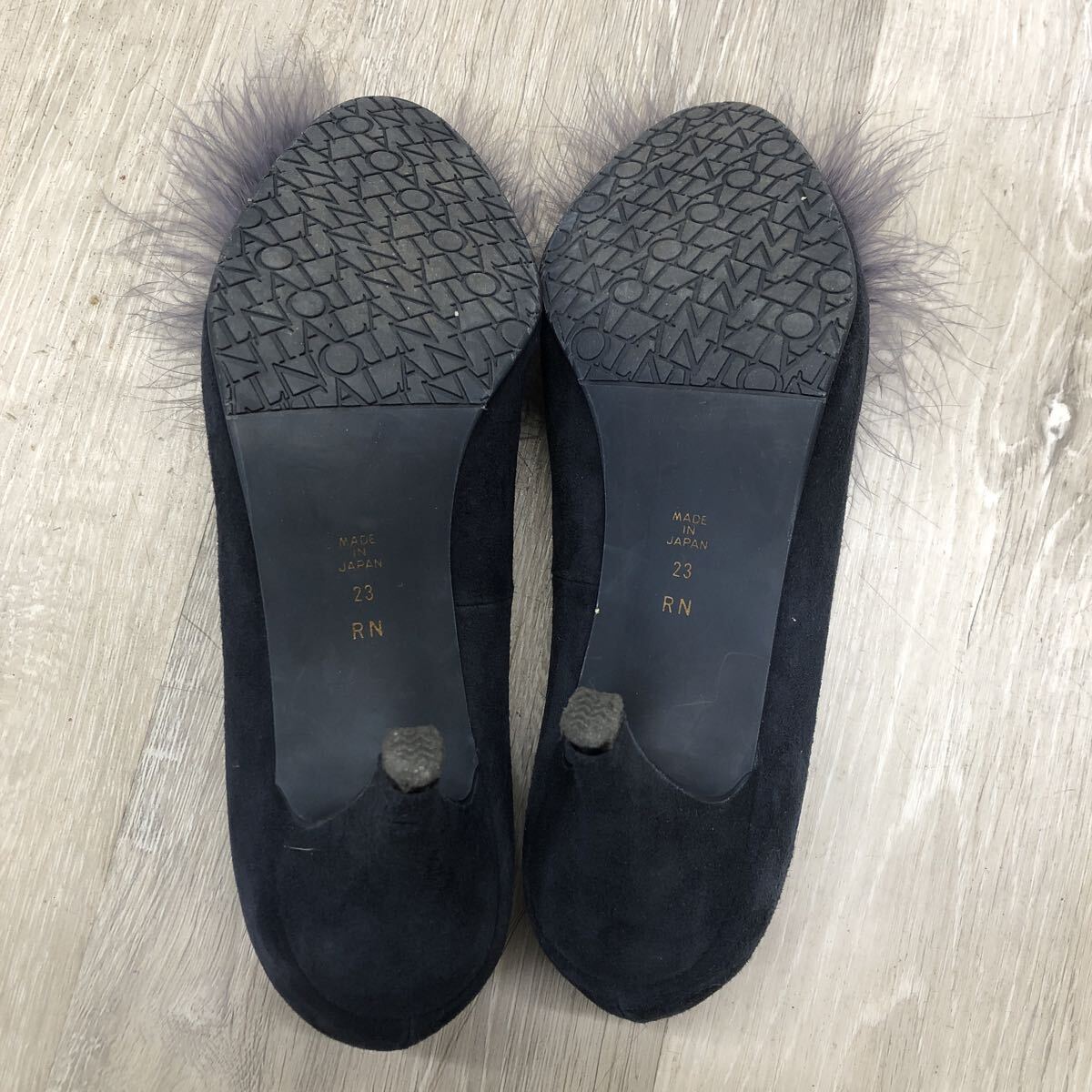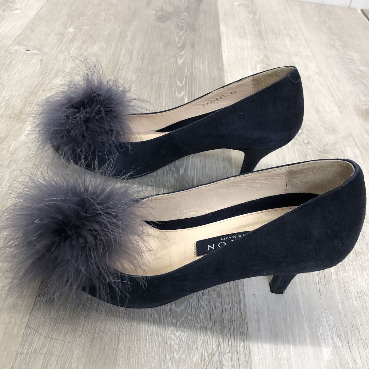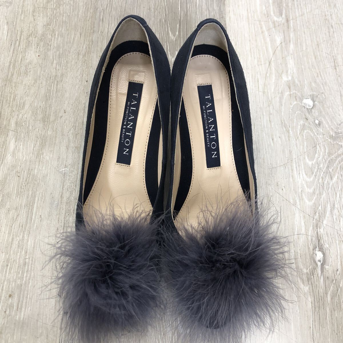 ★449 TALANTON DIANA タラントン バイ ダイアナ パンプス ダークブルー シルキースエード ファー 取り外し 2way ネイビー 23cm