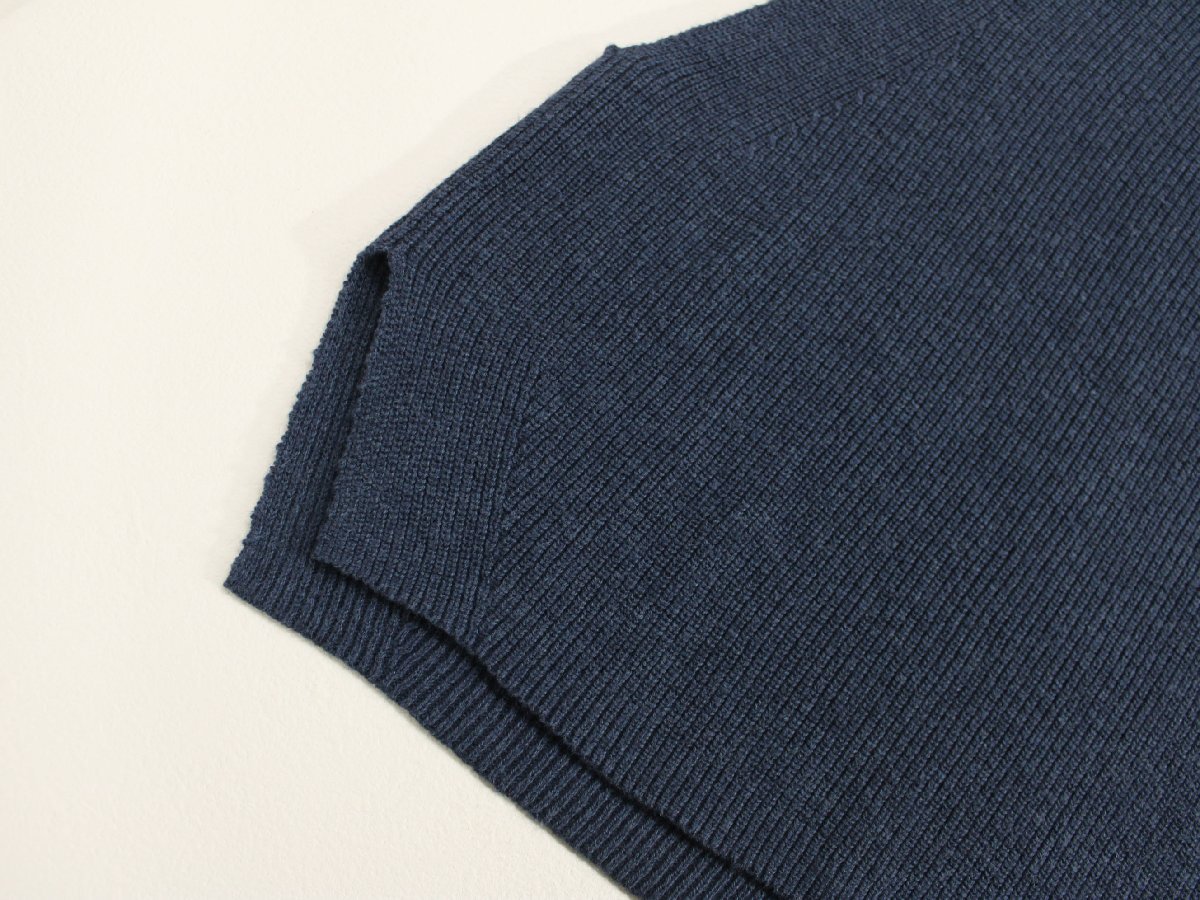 リブ編みデザインで、両サイドやスリットに編み目の変化が付けられています。