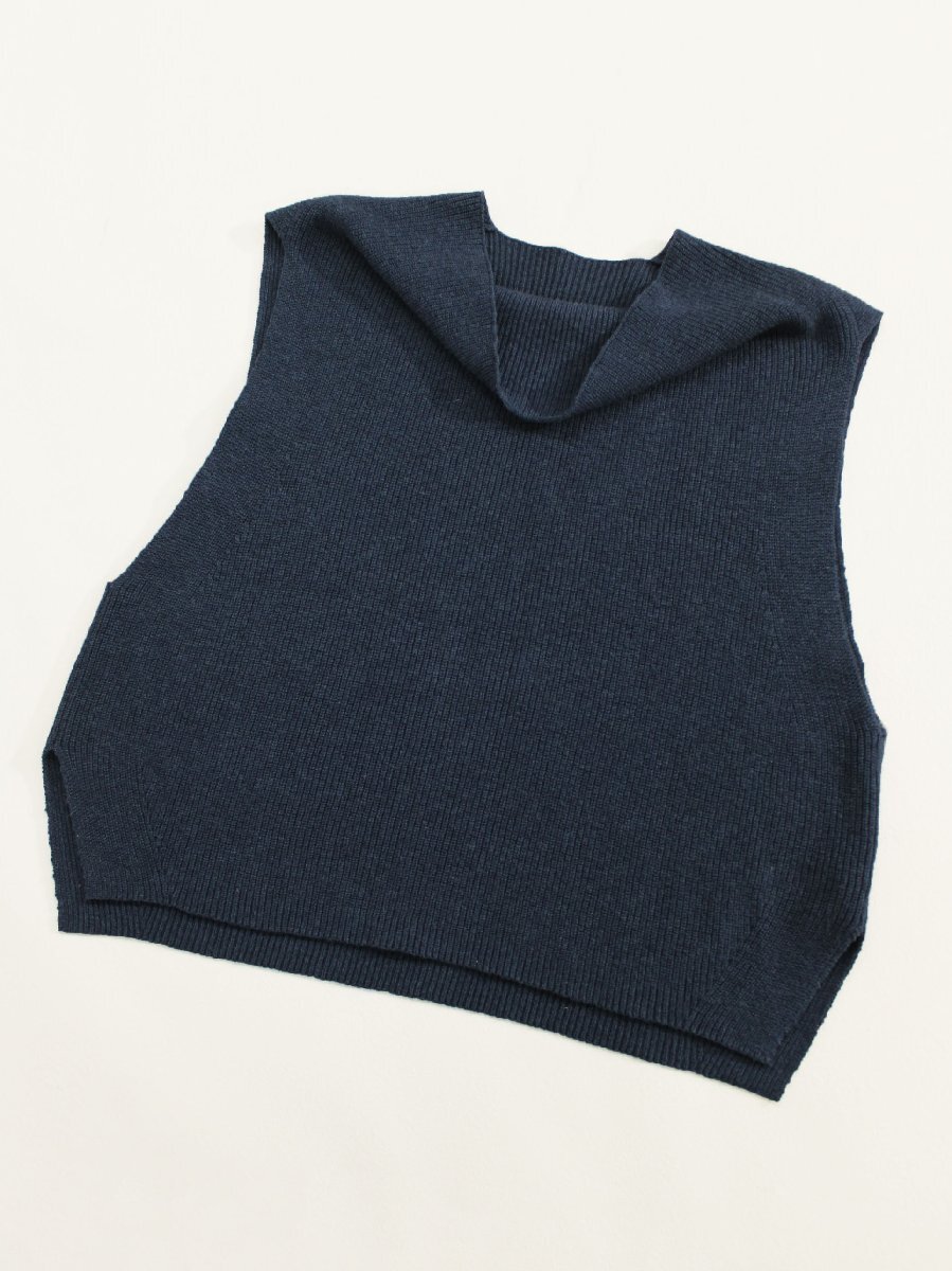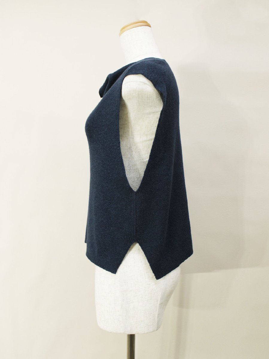 2024年極美品 ヨーガンレール コットンカシミヤドレープネックニットベスト M/紺 sd033