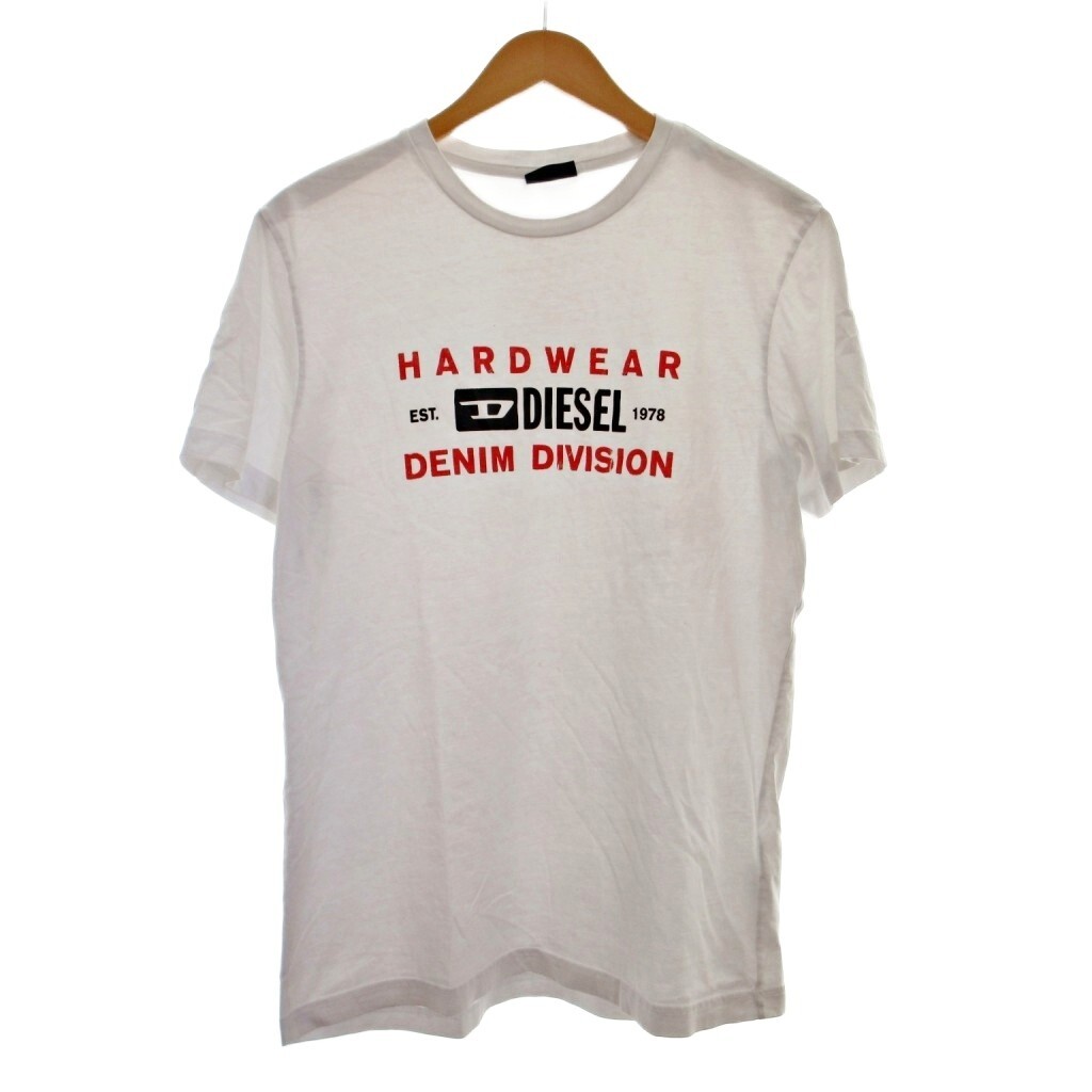 ディーゼル DIESEL Tシャツ カットソー 半袖 ロゴ プリント L 白 ホワイト 1121 IBO84 メンズ