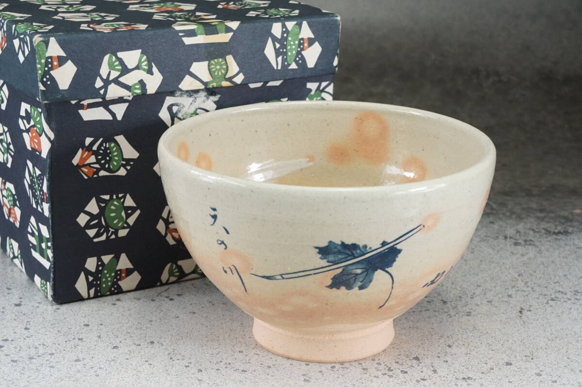 阿漕焼抹茶碗 御納戸焼 阿漕印 12.5cmx8cm / 茶道具 茶懐石 茶事 茶碗 抹茶碗 織部 志野 古瀬戸 表千家 裏千家