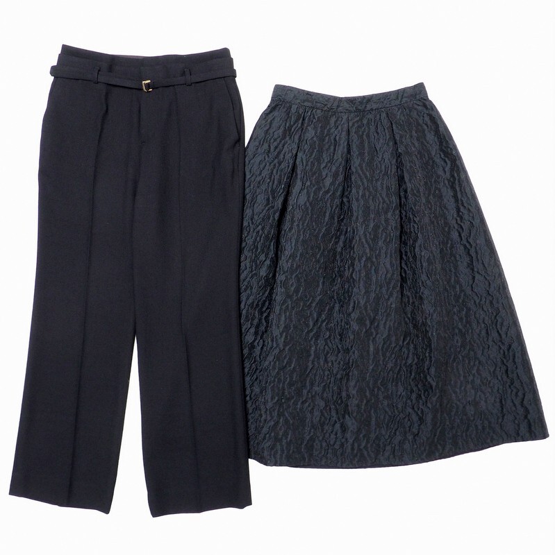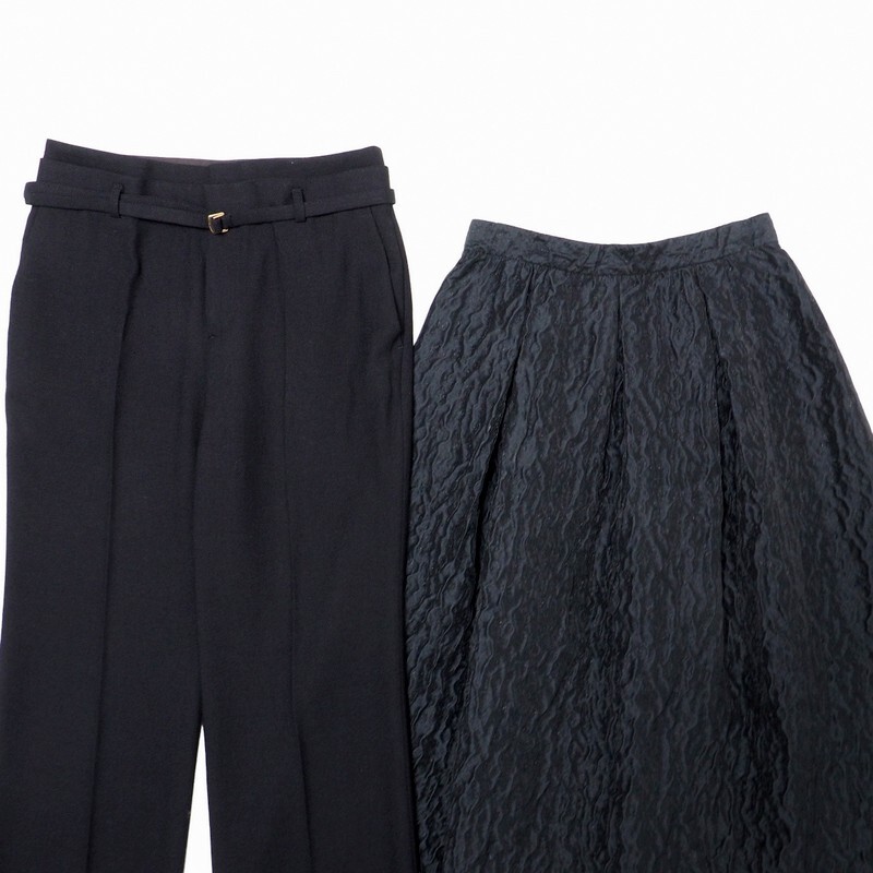 | TJ7090#2点セット*アナイ*ANAYI*ロングフレアスカート+センタープレスパンツ*スラックス*ブラック系*サイズ38 | |||