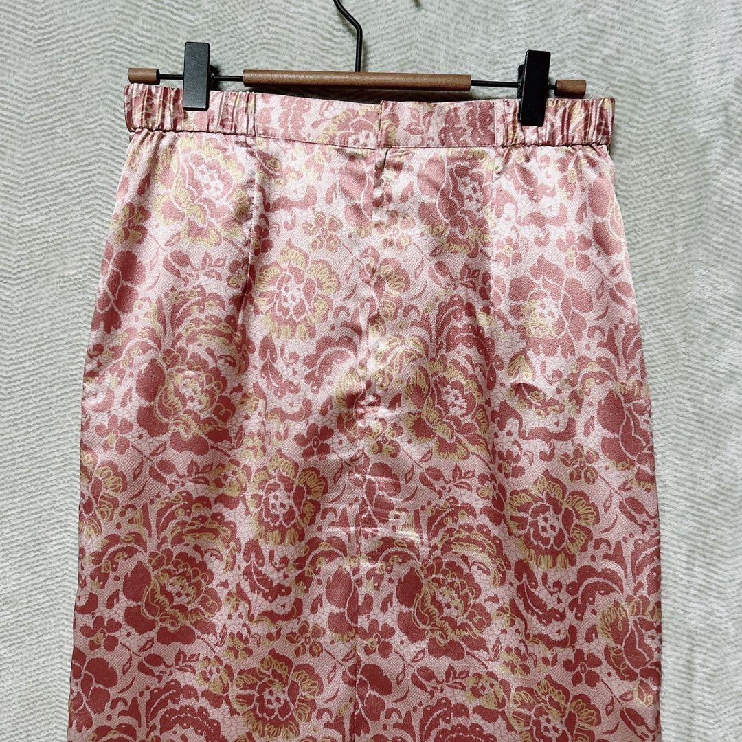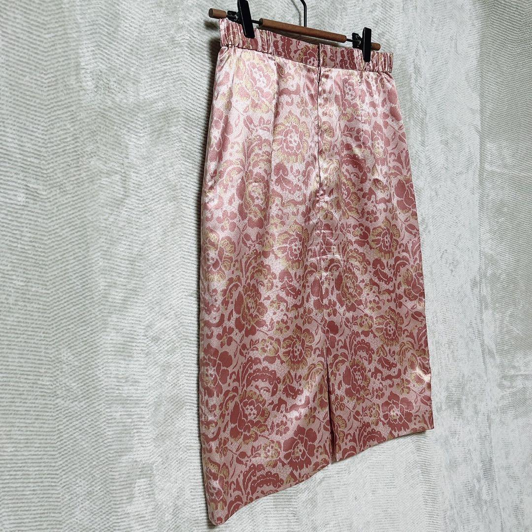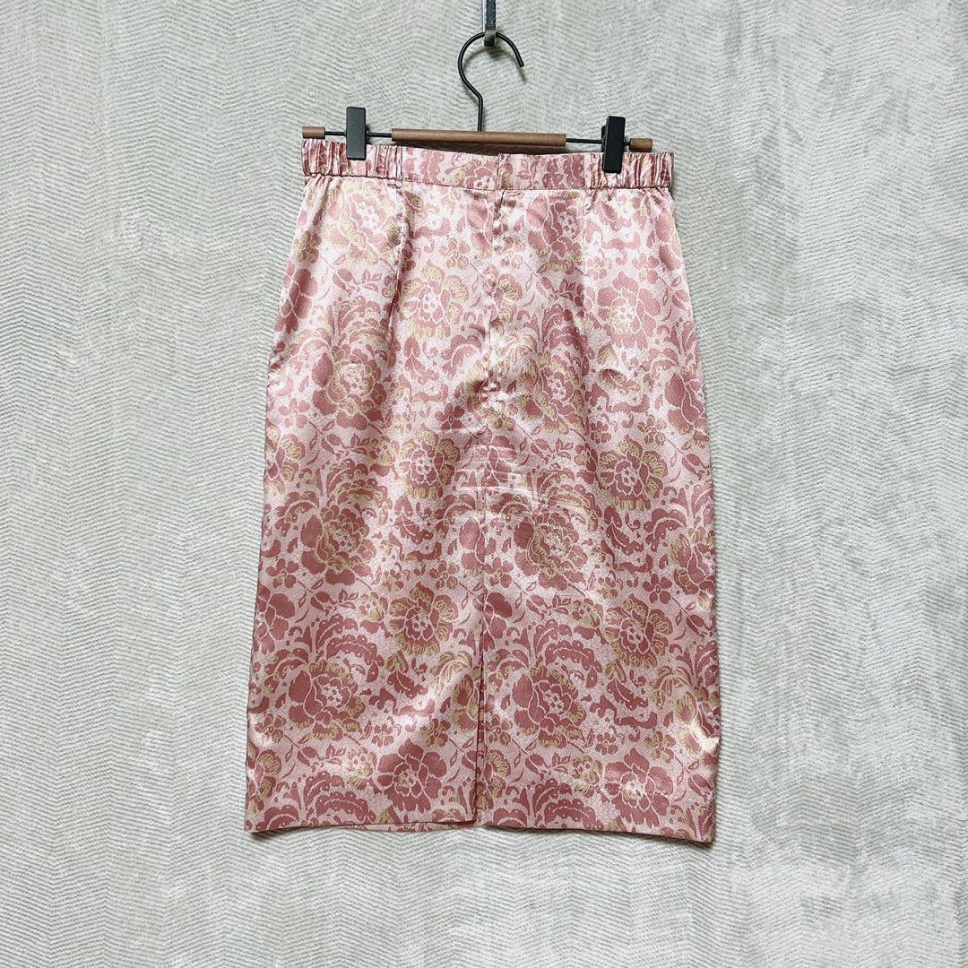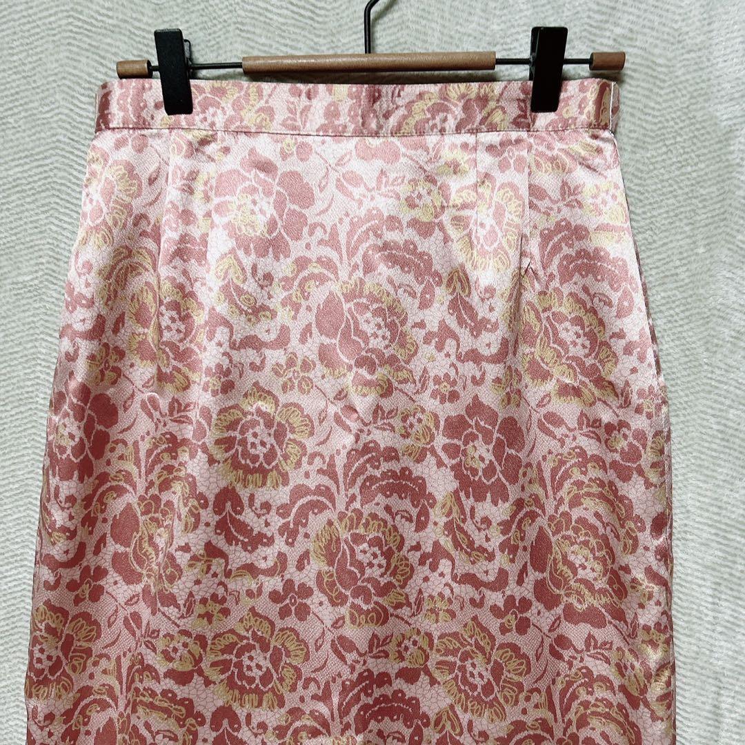 ボンシルエ ジャガードスカート M ピンク 花柄 光沢 エレガント 2213 F5E97B