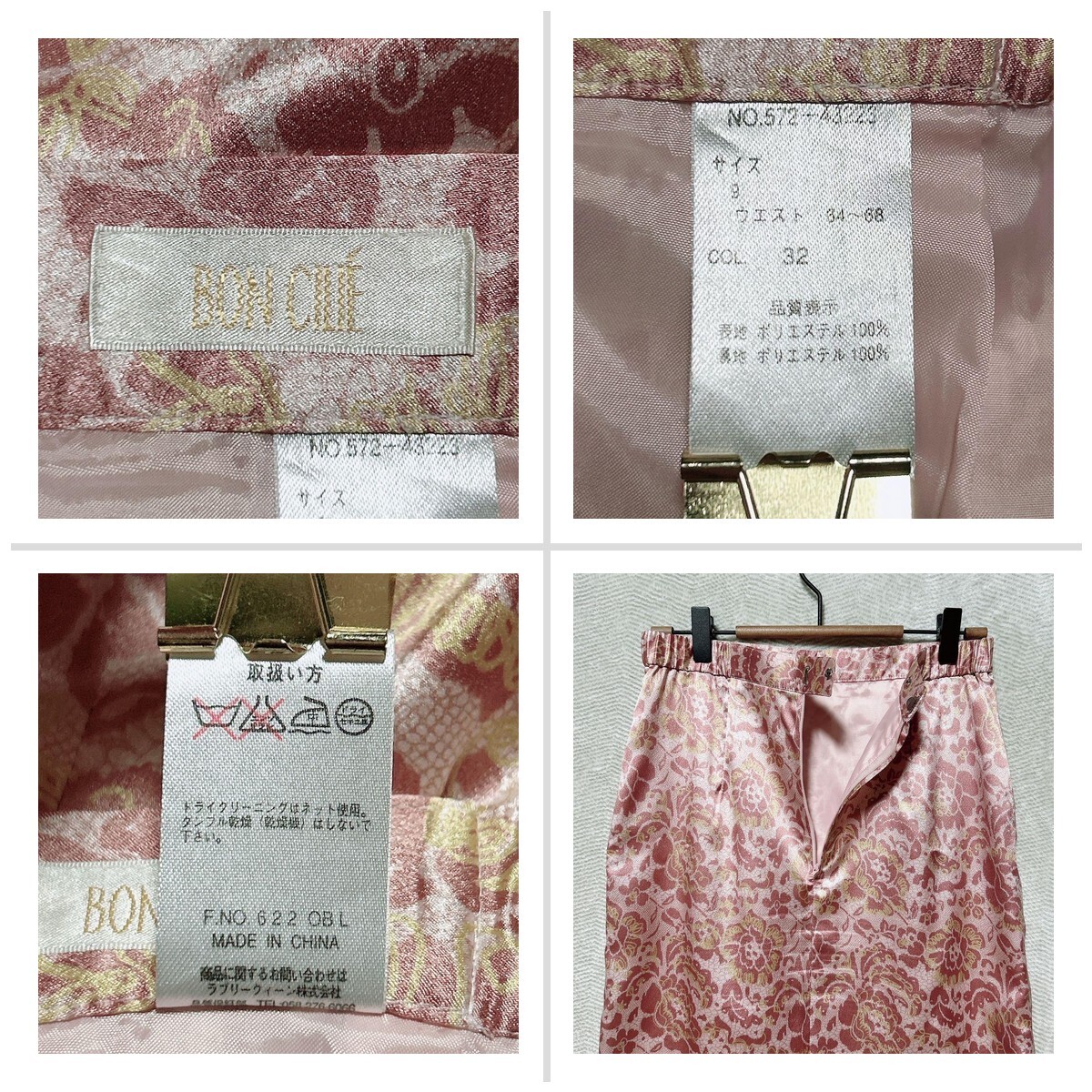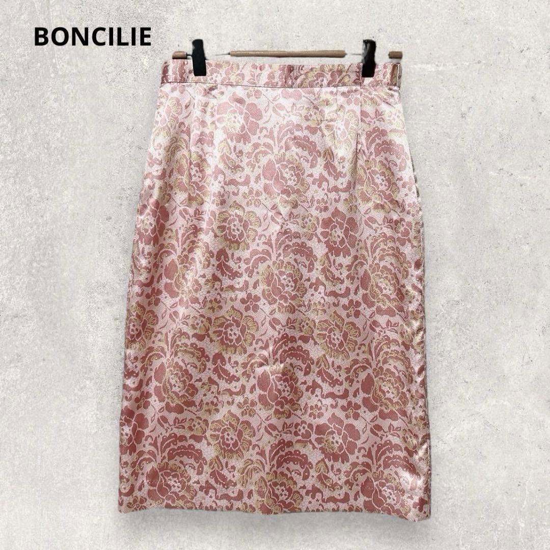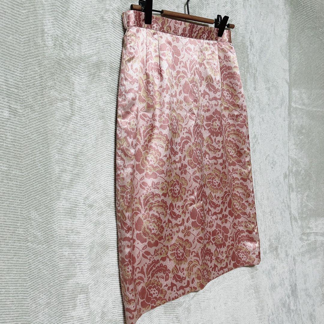 ボンシルエ ジャガードスカート M ピンク 花柄 光沢 エレガント 2213 F5E97B