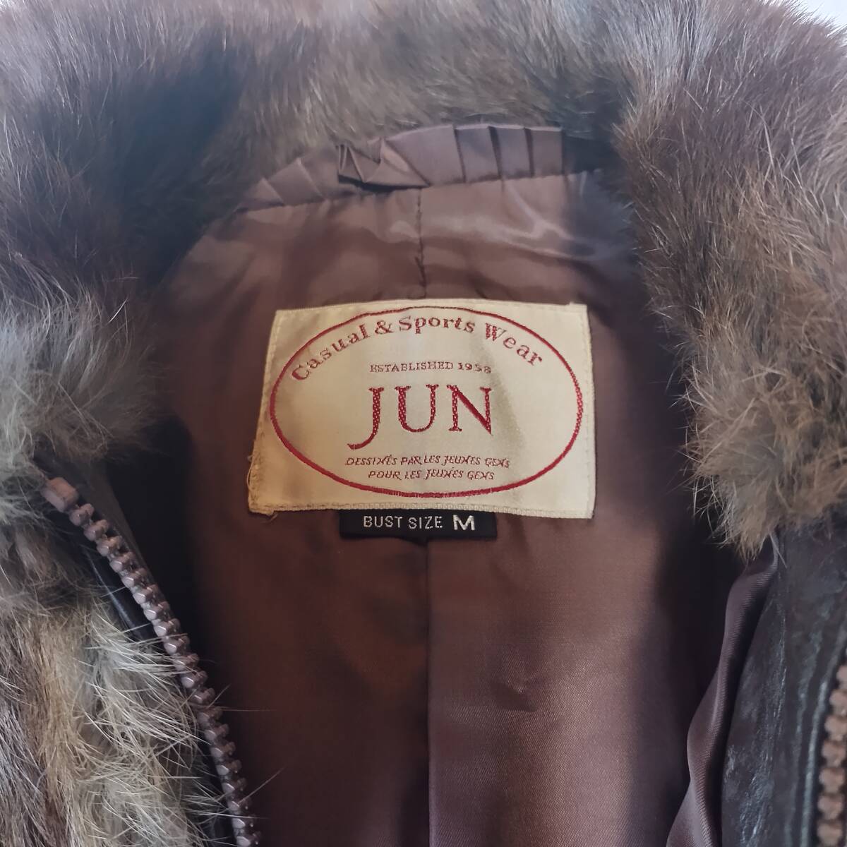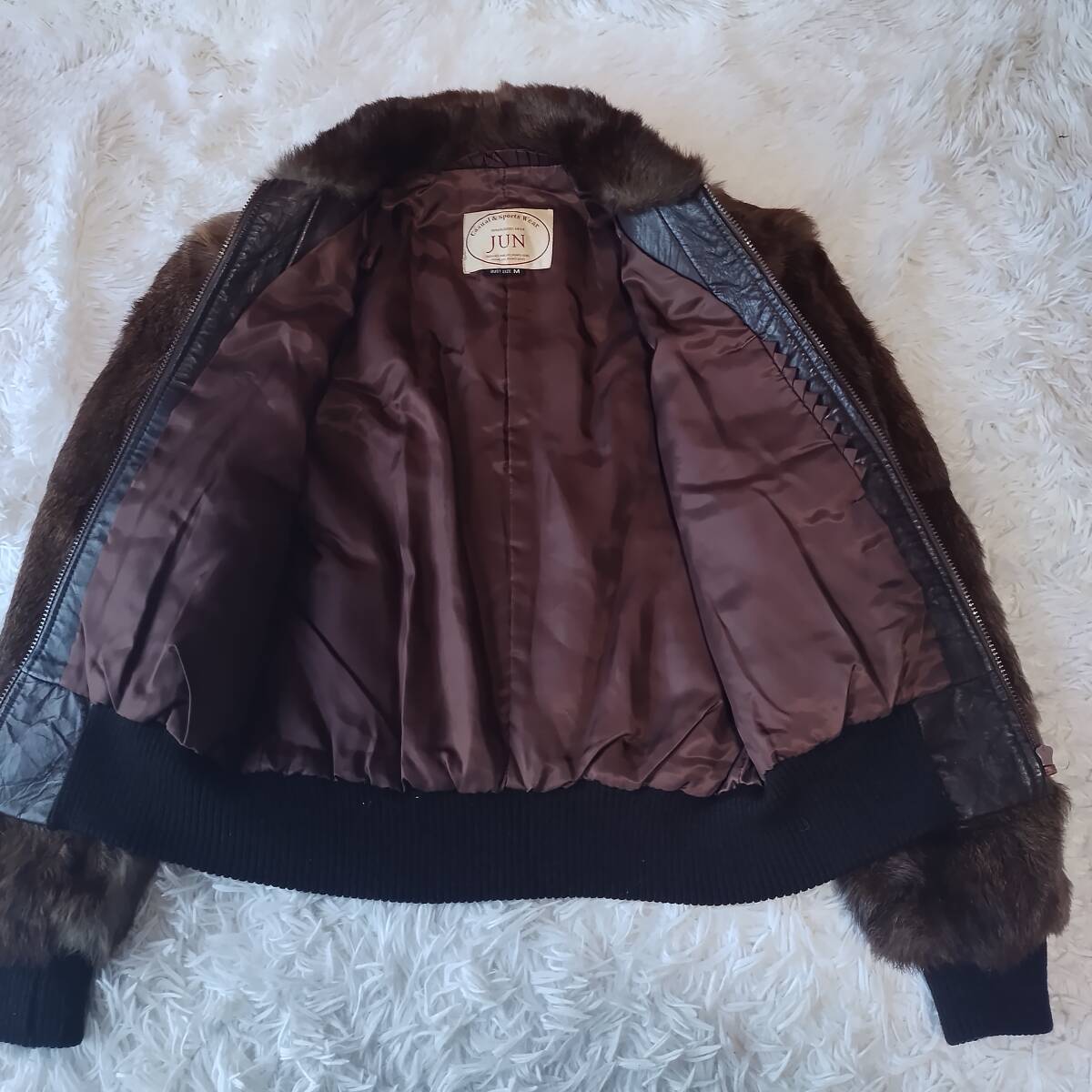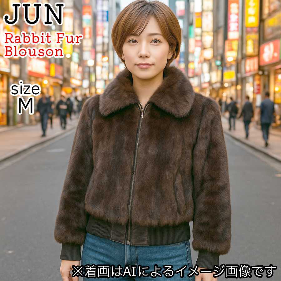 JUN ファーブルゾン 毛皮 ラビット リアルファー レディース ブラウン M ジャケット ジャンパー ヴィンテージ【J158】