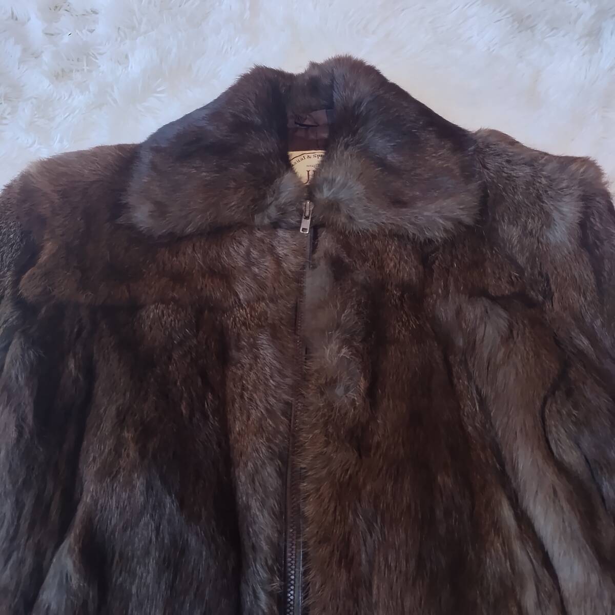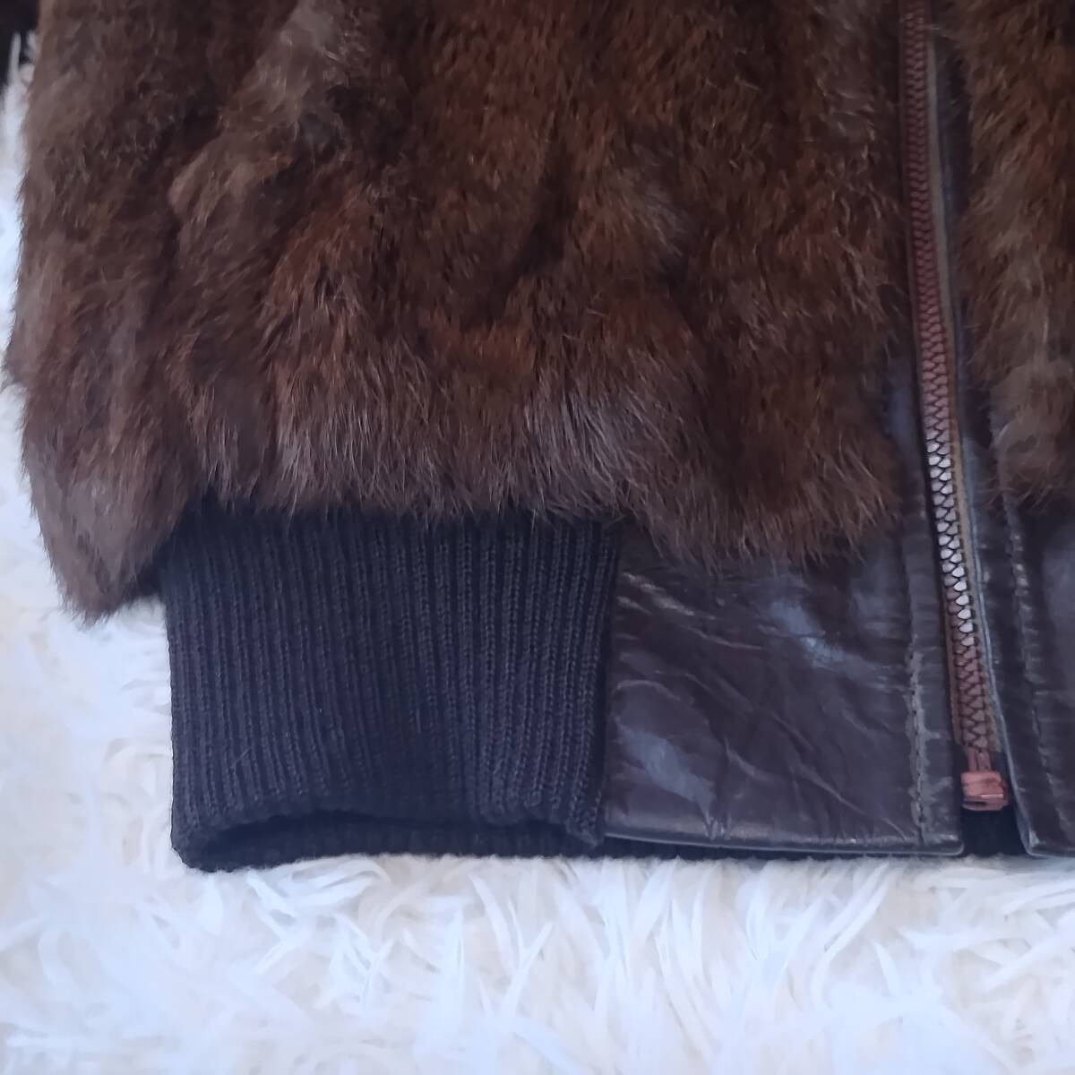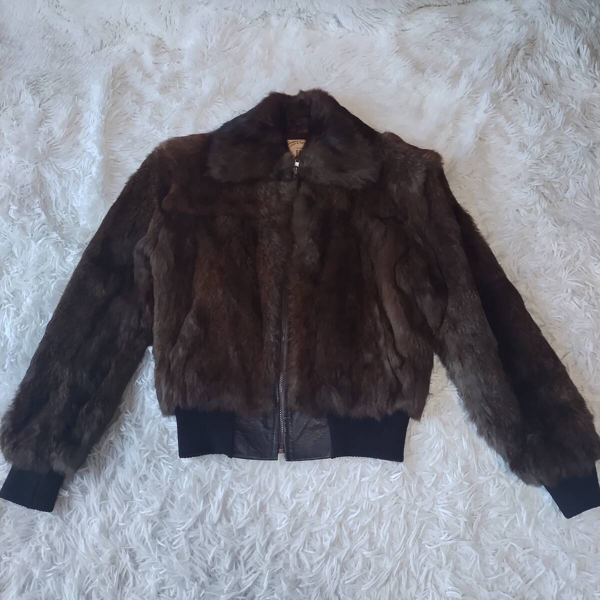 JUN ファーブルゾン 毛皮 ラビット リアルファー レディース ブラウン M ジャケット ジャンパー ヴィンテージ【J158】