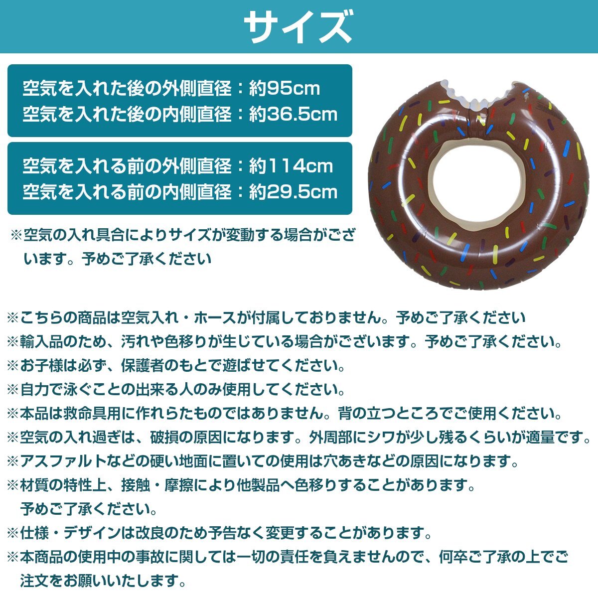 空気注入時:外径(約)φ95cm、内径(約)φ36.5cm