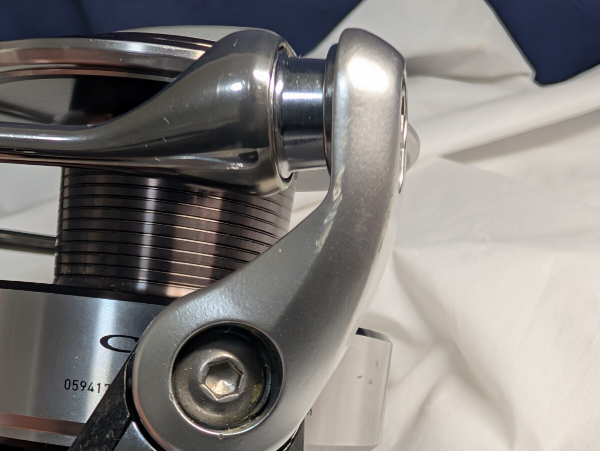 スプールエッジに爪を立てて確認したところ、ザラつきがございますが、深い傷ではございません。
