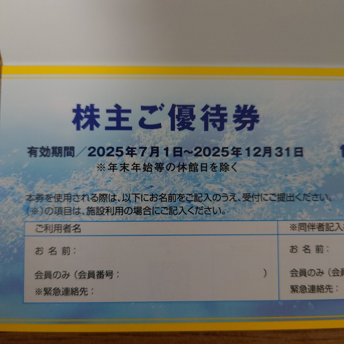 セントラルスポーツの株主優待券 3枚(3枚綴1冊)です。