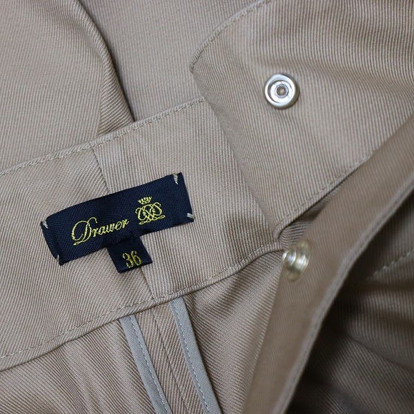★★年末年始休業期間中の発送とお問い合わせ業務について★★誠に勝手ながら、下記期間におけるお問合せ対応及び、発送業務をお休みさせていただきます。何卒ご了承くださいますよう、お願い申し上げます。【年末年始 休業期間】12月26日(金) :営業 [10時までのご注文は当日発送]12月27日(土)~1月4日(日):休業※休業期間中もご注文は受け付けておりますが、発送は1月5日(月)~となります。【ブランド】DRAWER ドゥロワー【アイテム】タイパンツ リラックスパンツ パンツ【表記サイズ】36【平置き実寸】ウェスト:約 36cm股上:約 32cm股下:約 57cmわたり幅:約 27cm裾幅:約 16cm【状態】やや傷や汚れあり【備考】ウエスト後ろ左にやや汚れ、右ボタンに傷がございます(画像8、9参照)【色】濃いベージュ系【素材】画像をご参照ください。★当店の商品はすべてリユースアイテムとなります。特質上、些細なダメージは記載しておりませんので着用に問題のない使用感、着古した雰囲気などはご了承くださいませ。